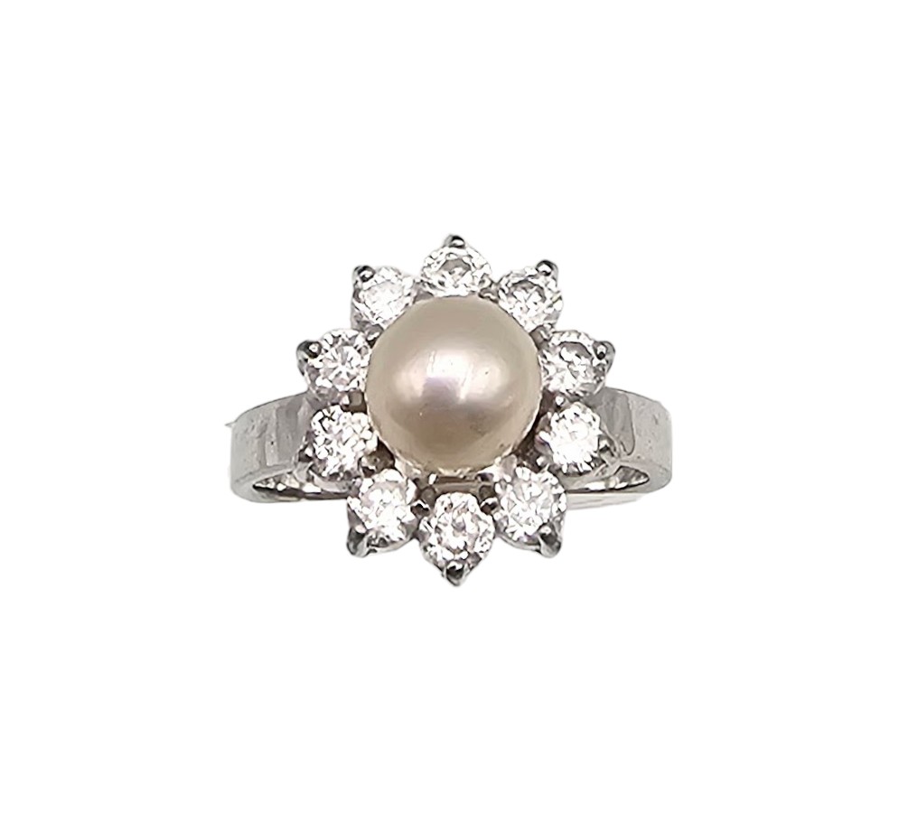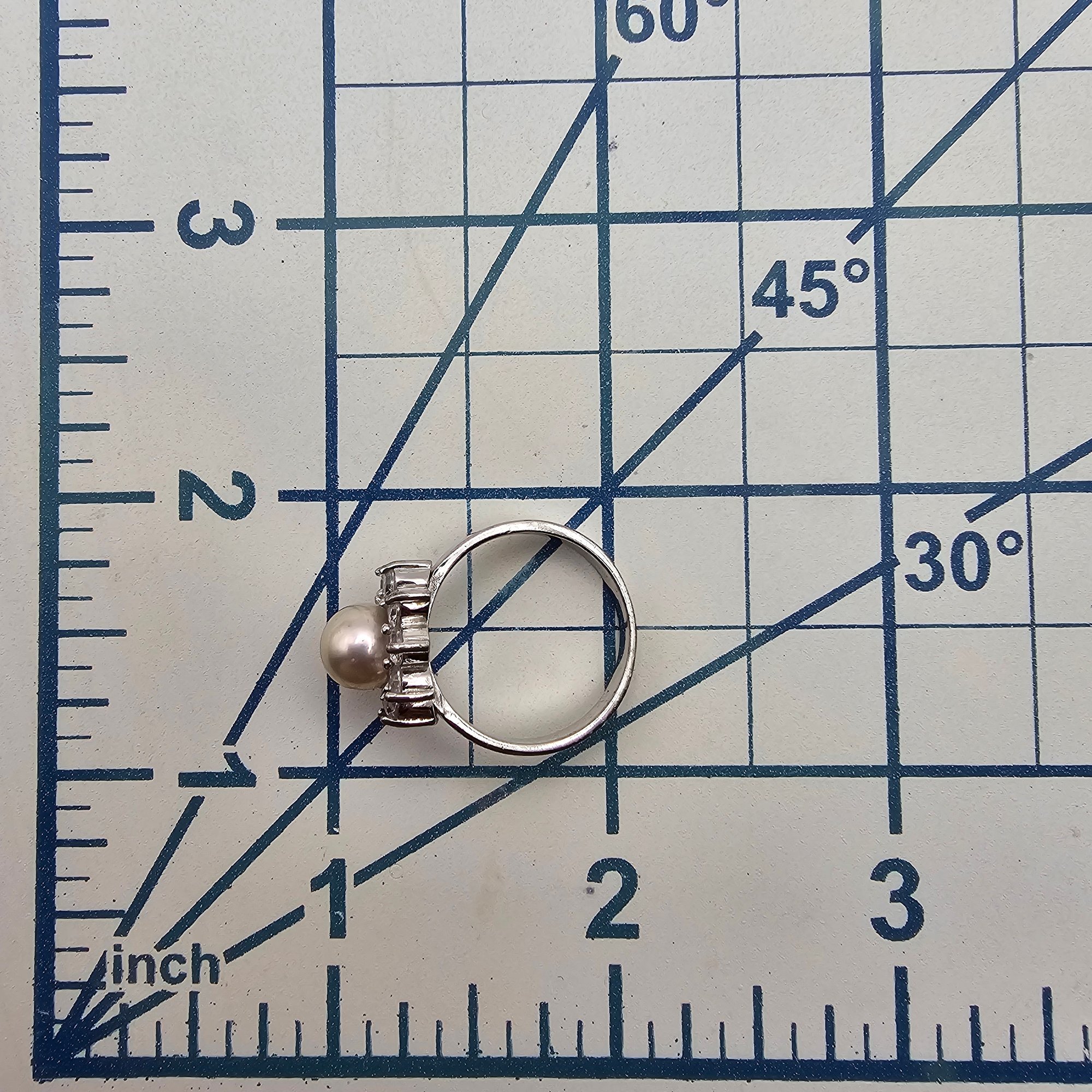 Pearl Rhinestone Sterling Silver Ring Size 7 4.6 G