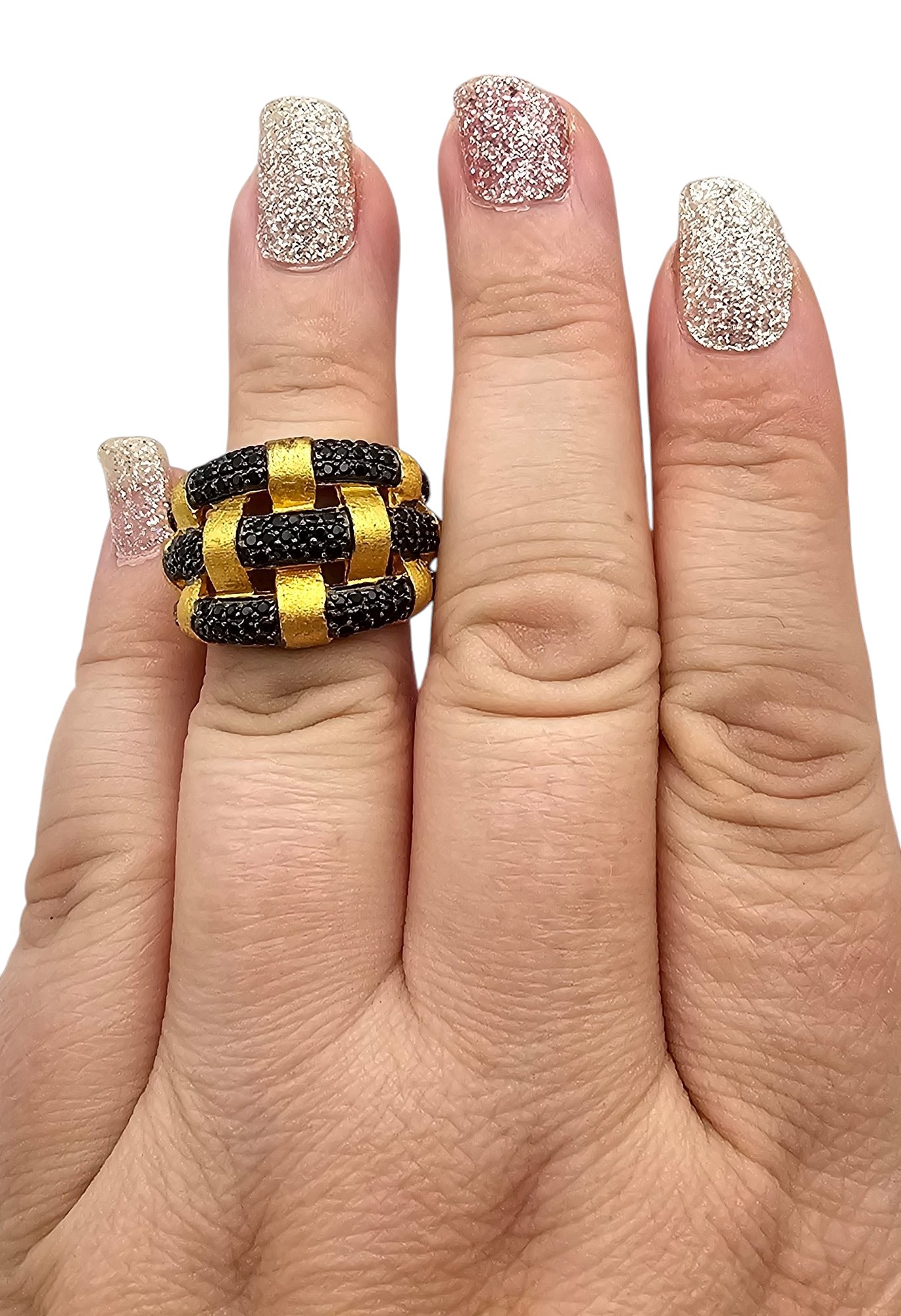 Rhinestone Gold Over Sterling Silver Cocktail Ring Size 6.75 9.2 G