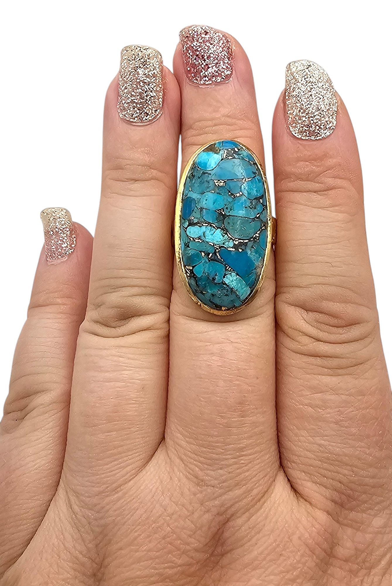 NI B? Turquoise Gold Over Sterling Silver Ring Size 7.5 9.3 G