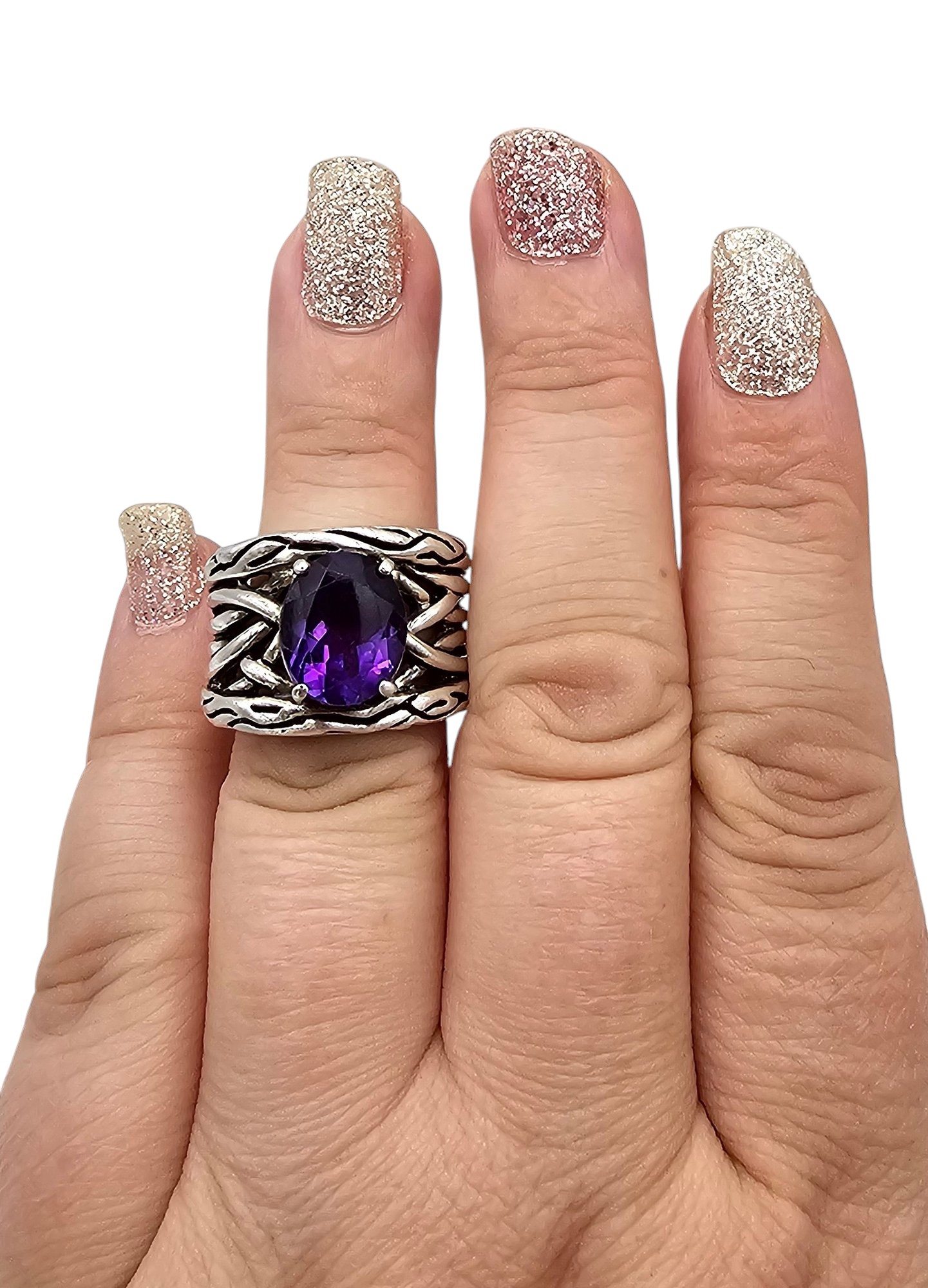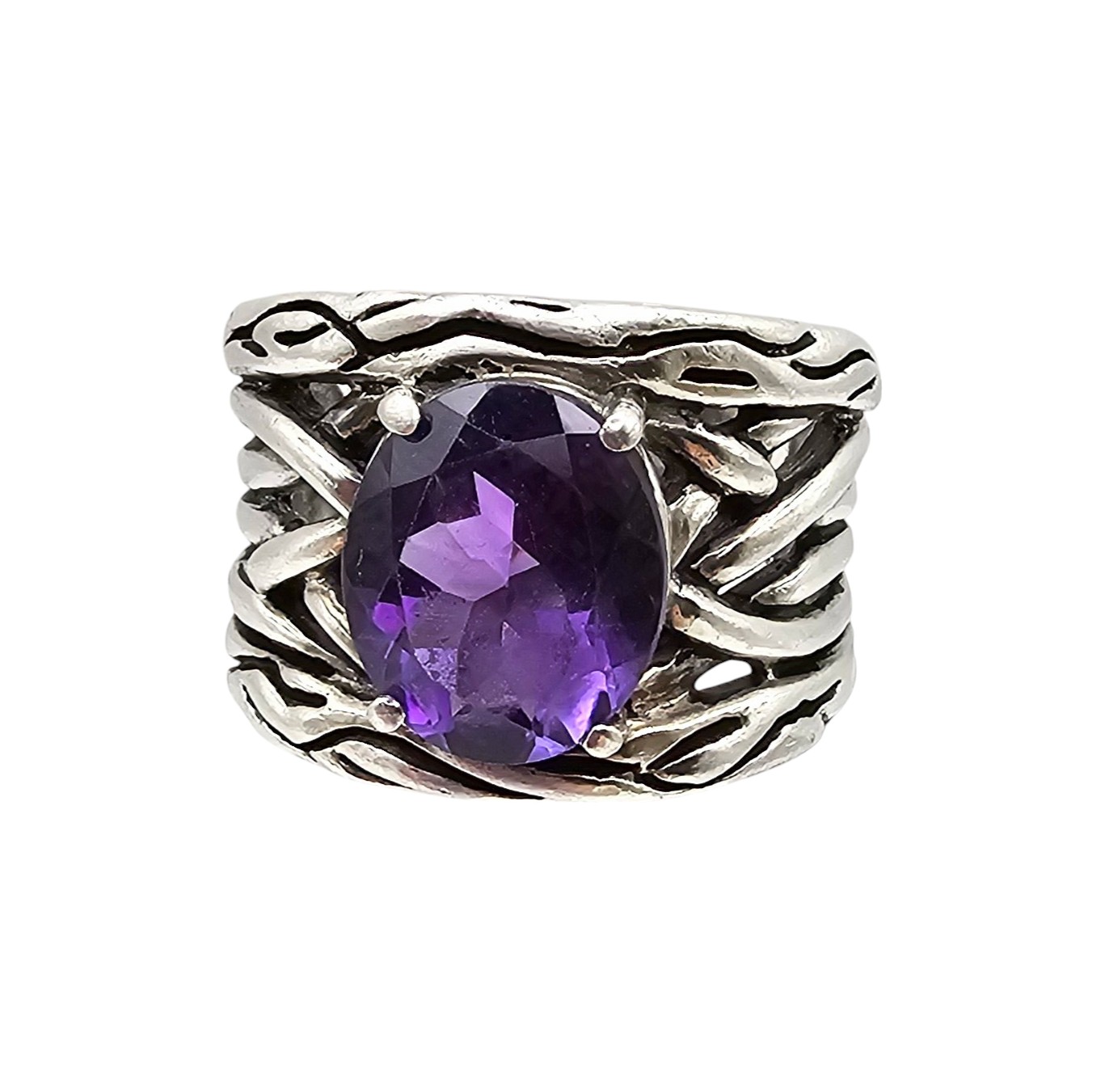 BH Amethyst Sterling Silver Cocktail Ring Size 6.5 15.2 G