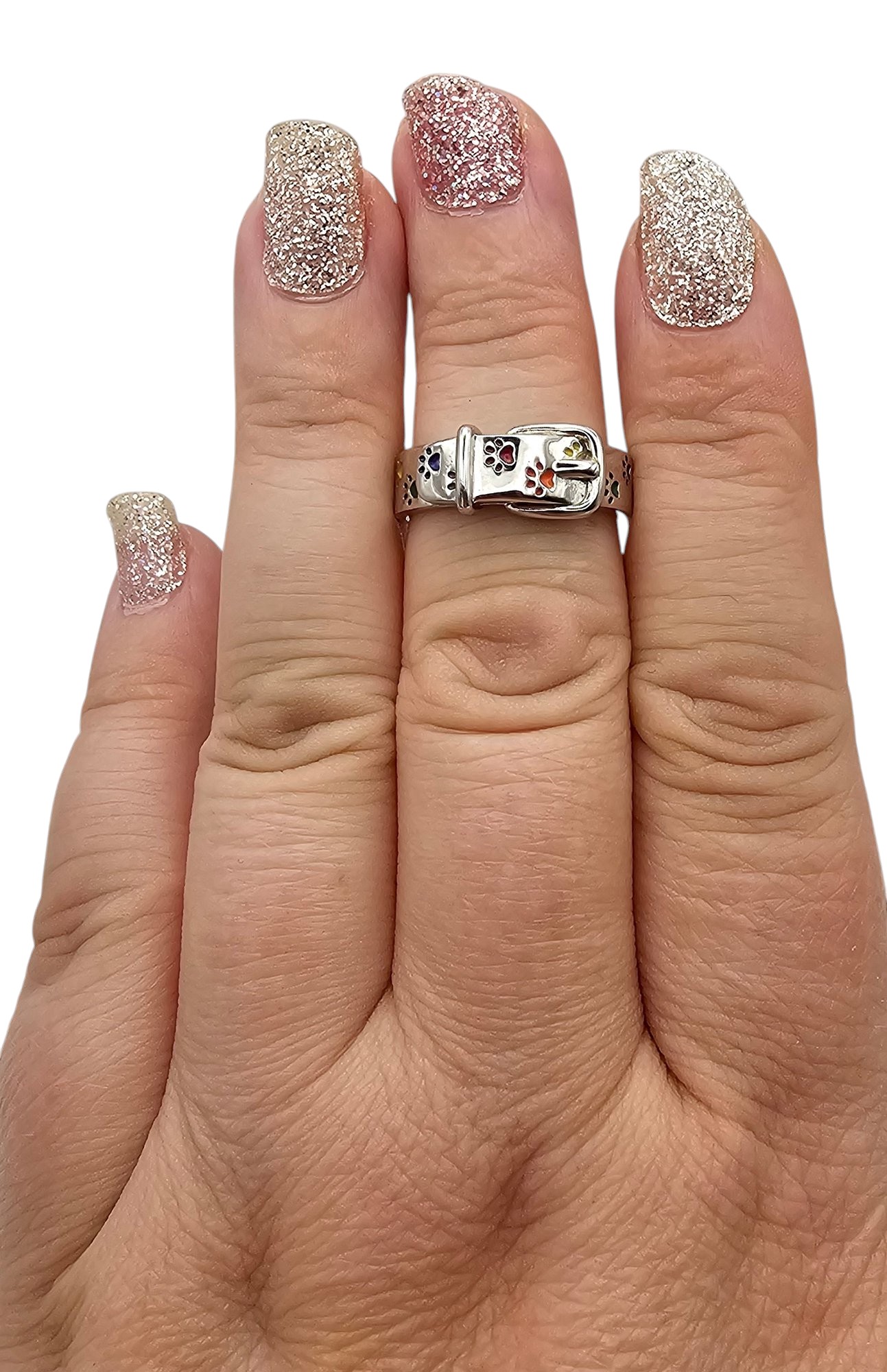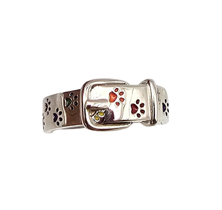 Betty SC Sterling Silver Pet Paw Belt Ring Size 7.5 5.6 G