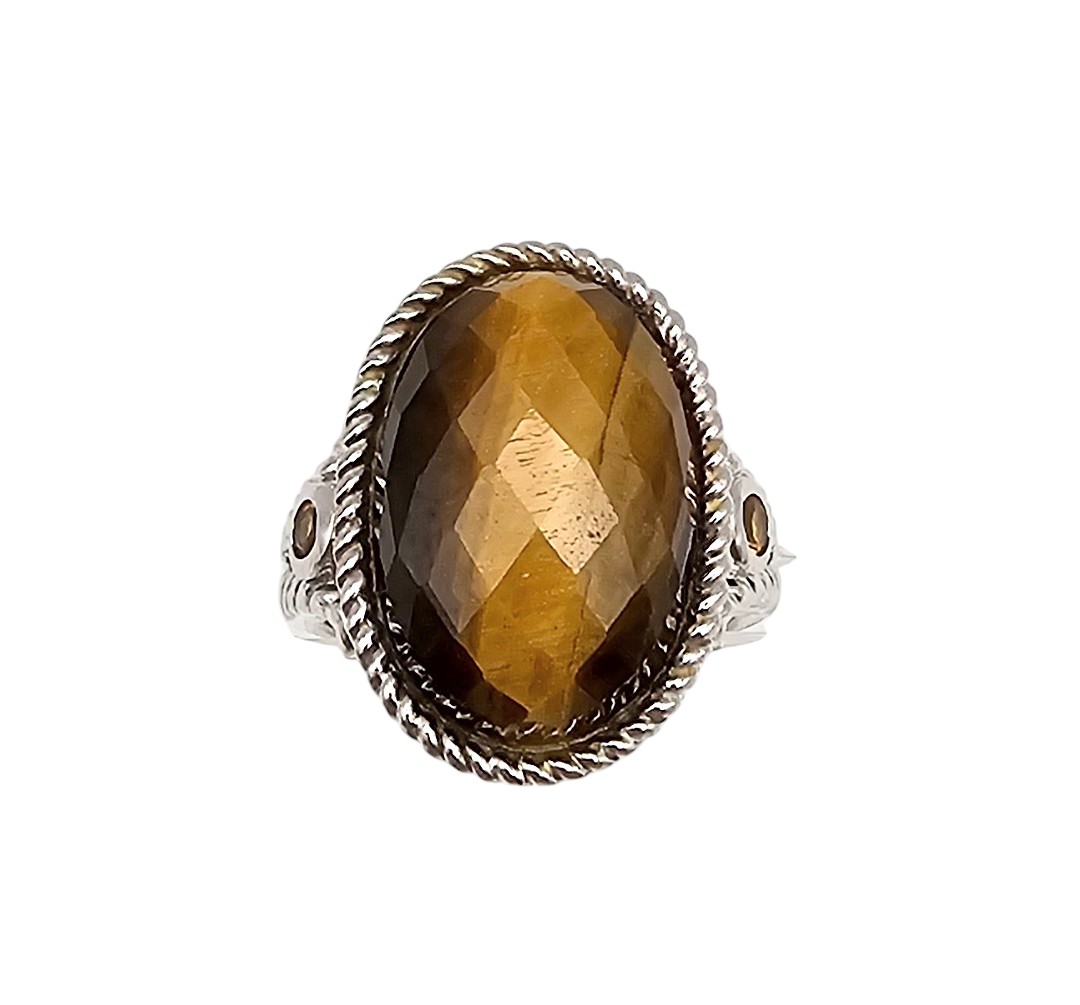 EA Cushion Cut Tigers Eye Sterling Silver Ring Size 6.75 6.7 G