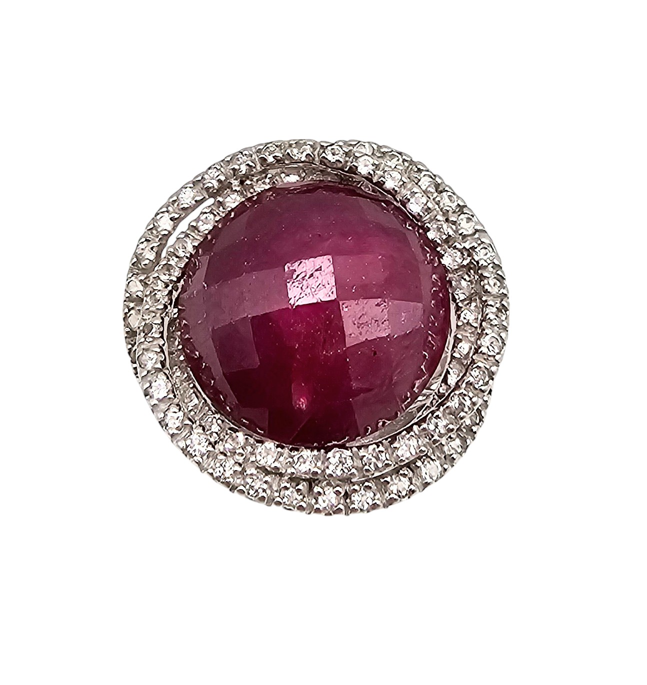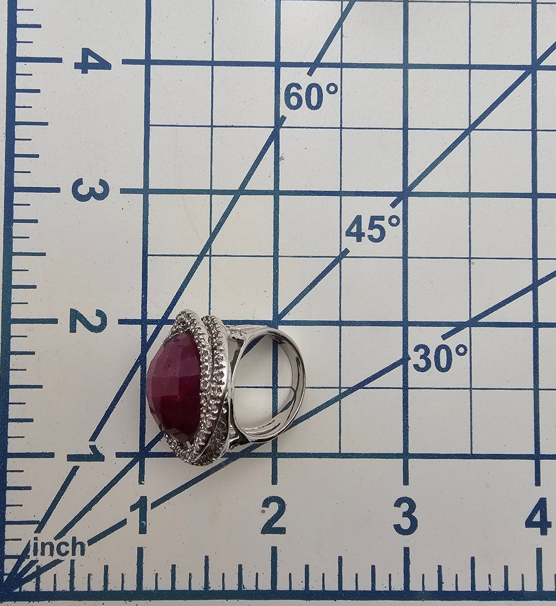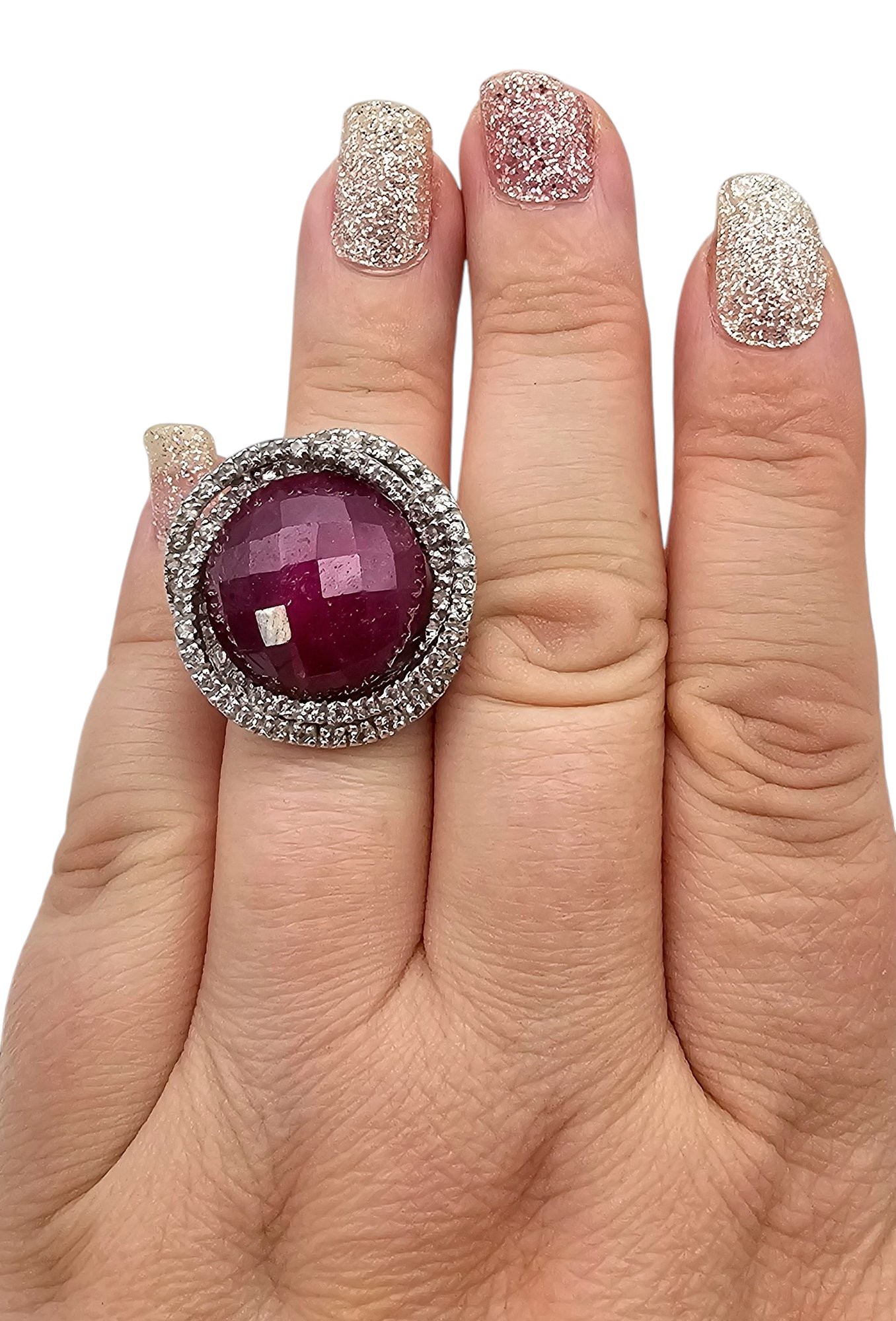 NF White Topaz Ruby Sterling Silver Cocktail Ring Size 6.5 14.4 G