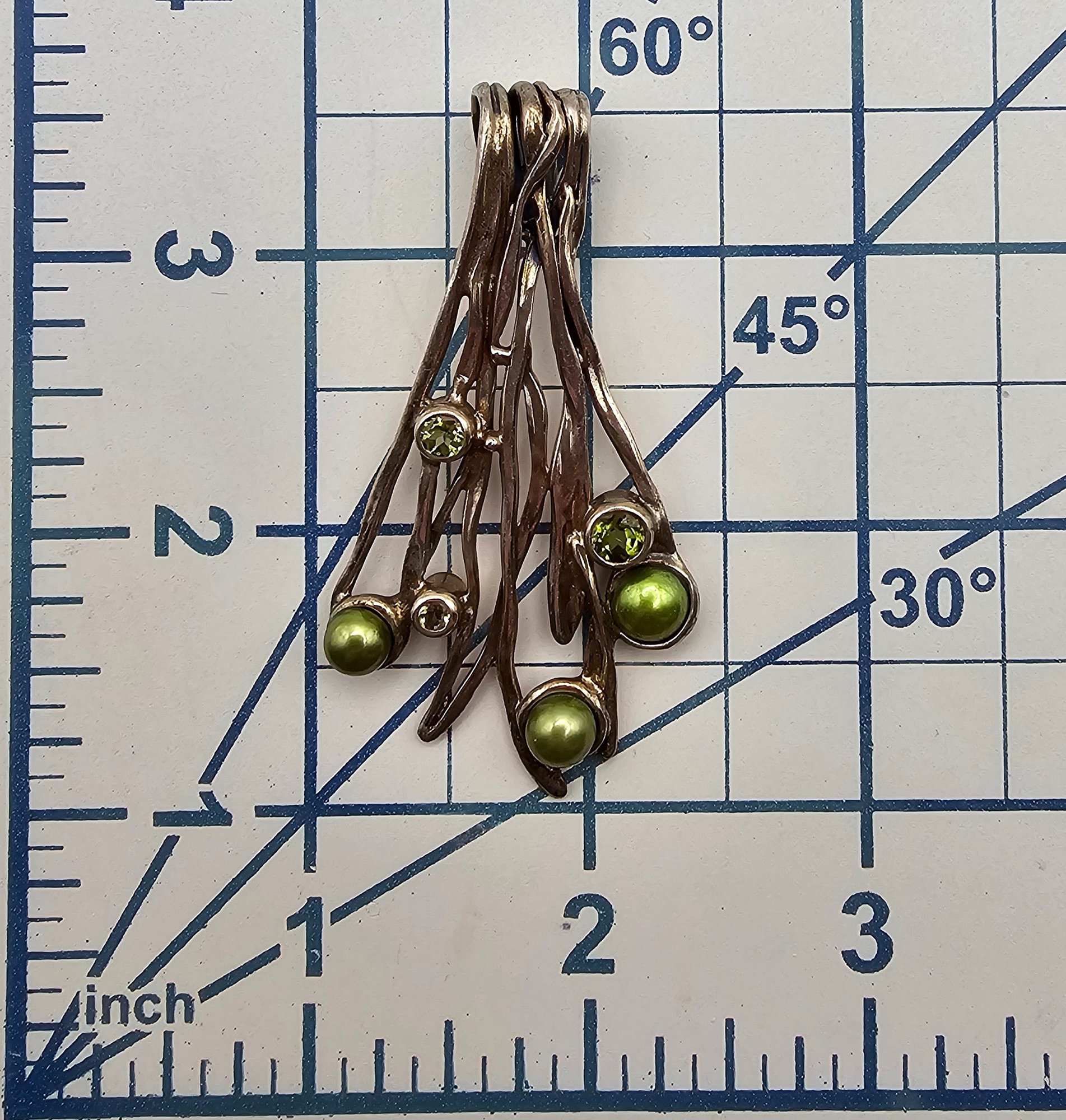 HG Hagit Gorali Pearl Peridot Sterling Silver Modernist Pendant 12.9 G
