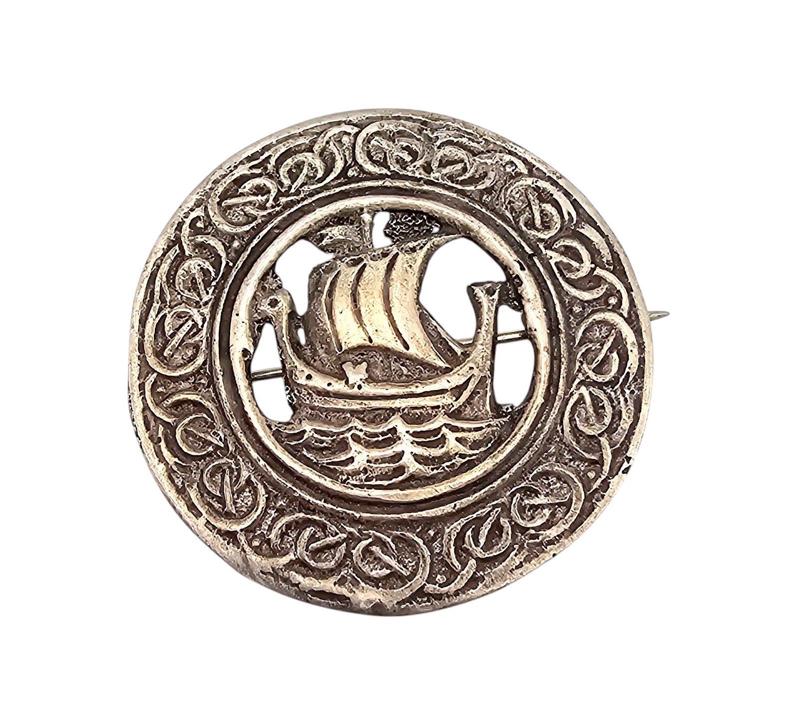Scotland Sterling Silver Viking Ship Brooch 15.7 G
