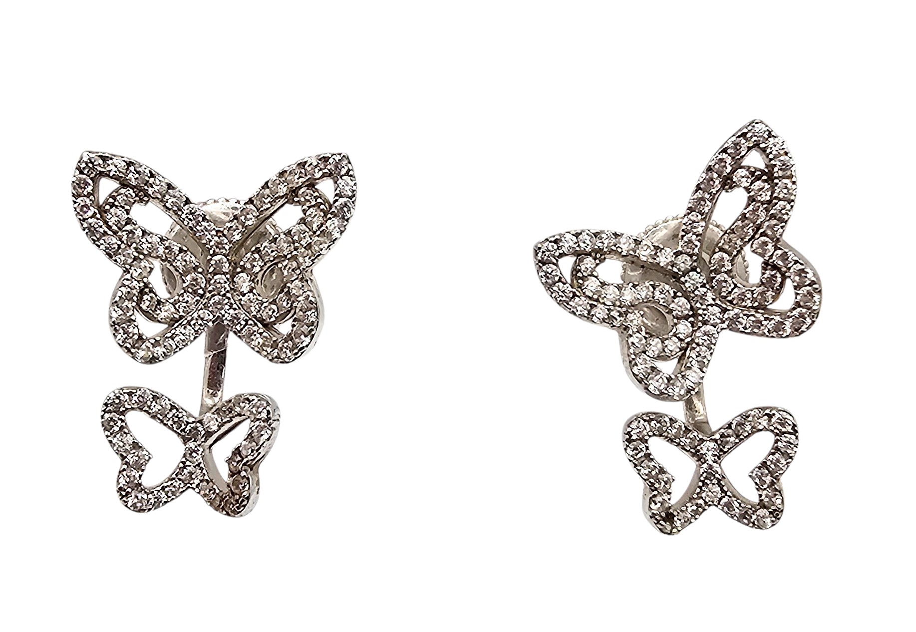 Rhinestone Sterling Silver Butterfly Earrings 4.8 G