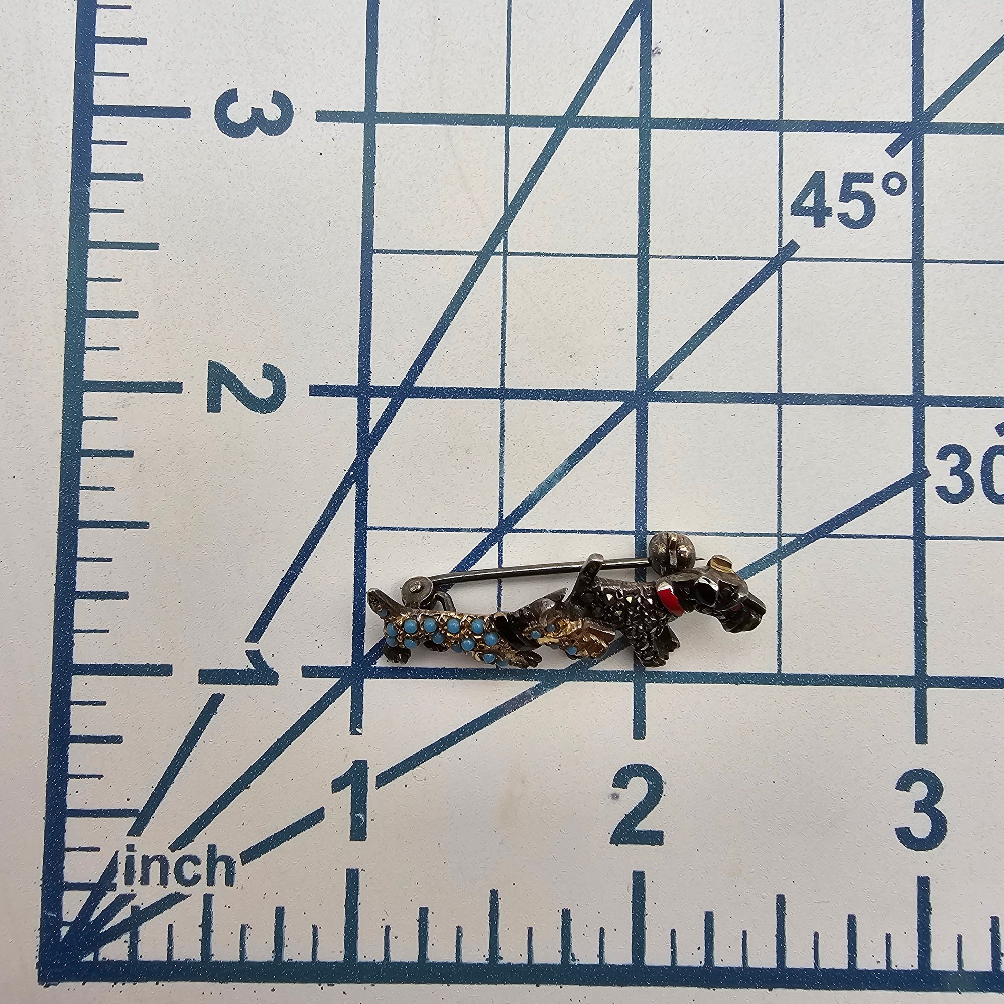 Vintage Germany Rhinestone Enamel Sterling Silver Dog Pin 3.8 G