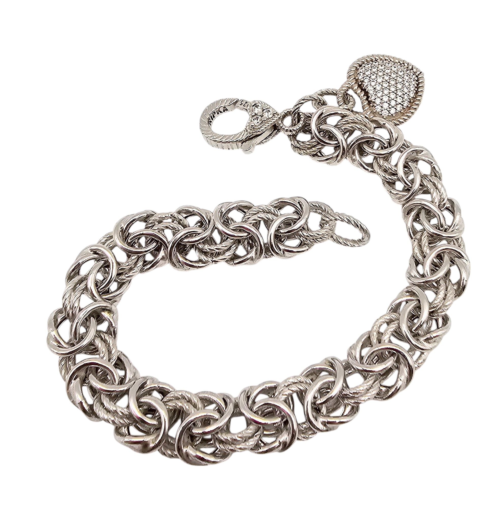 Italy Cubic Zirconia Sterling Silver Byzantine Chain Bracelet 20.2 G
