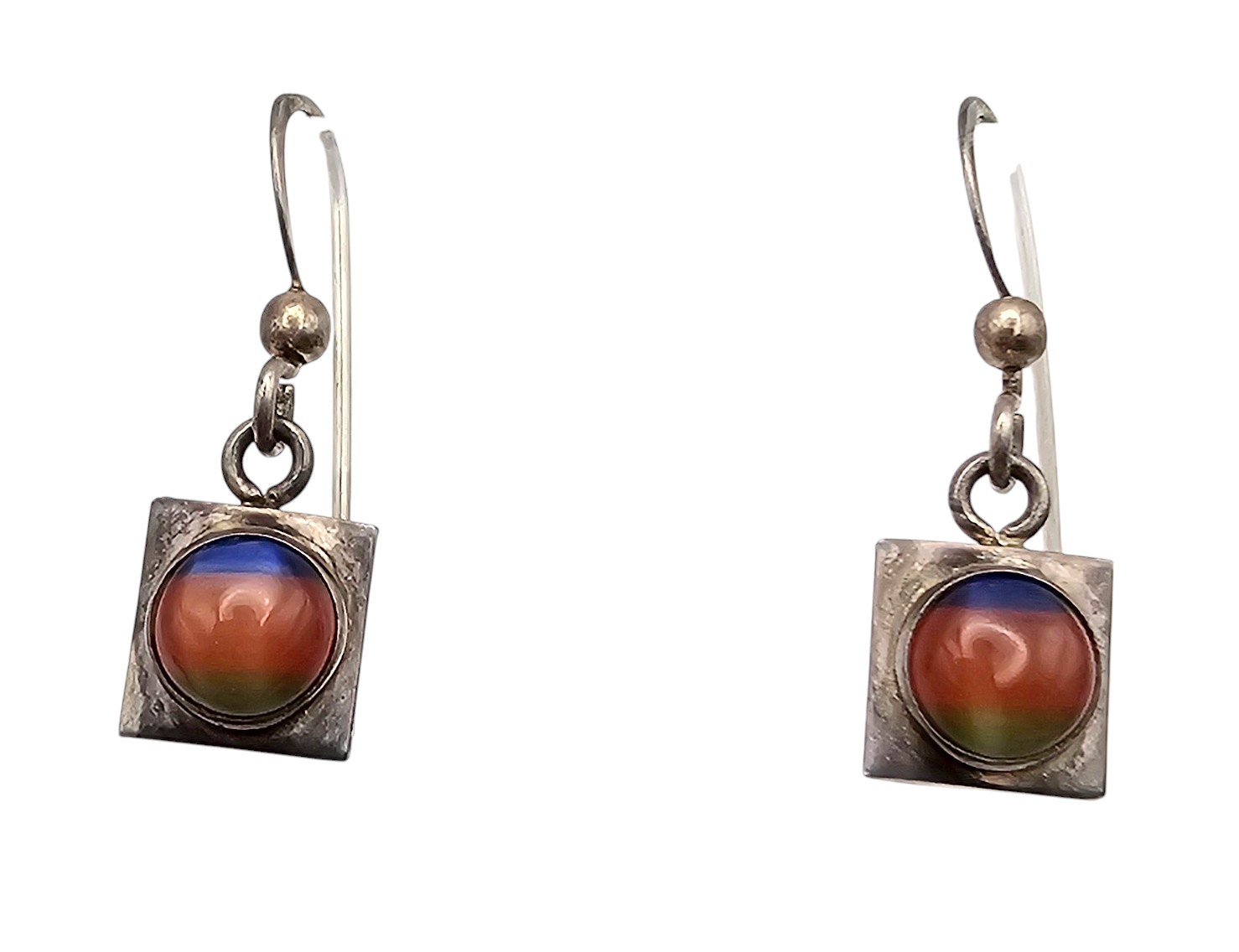 Cat Eye Sterling Silver Drop Dangle Earrings 3.1 G