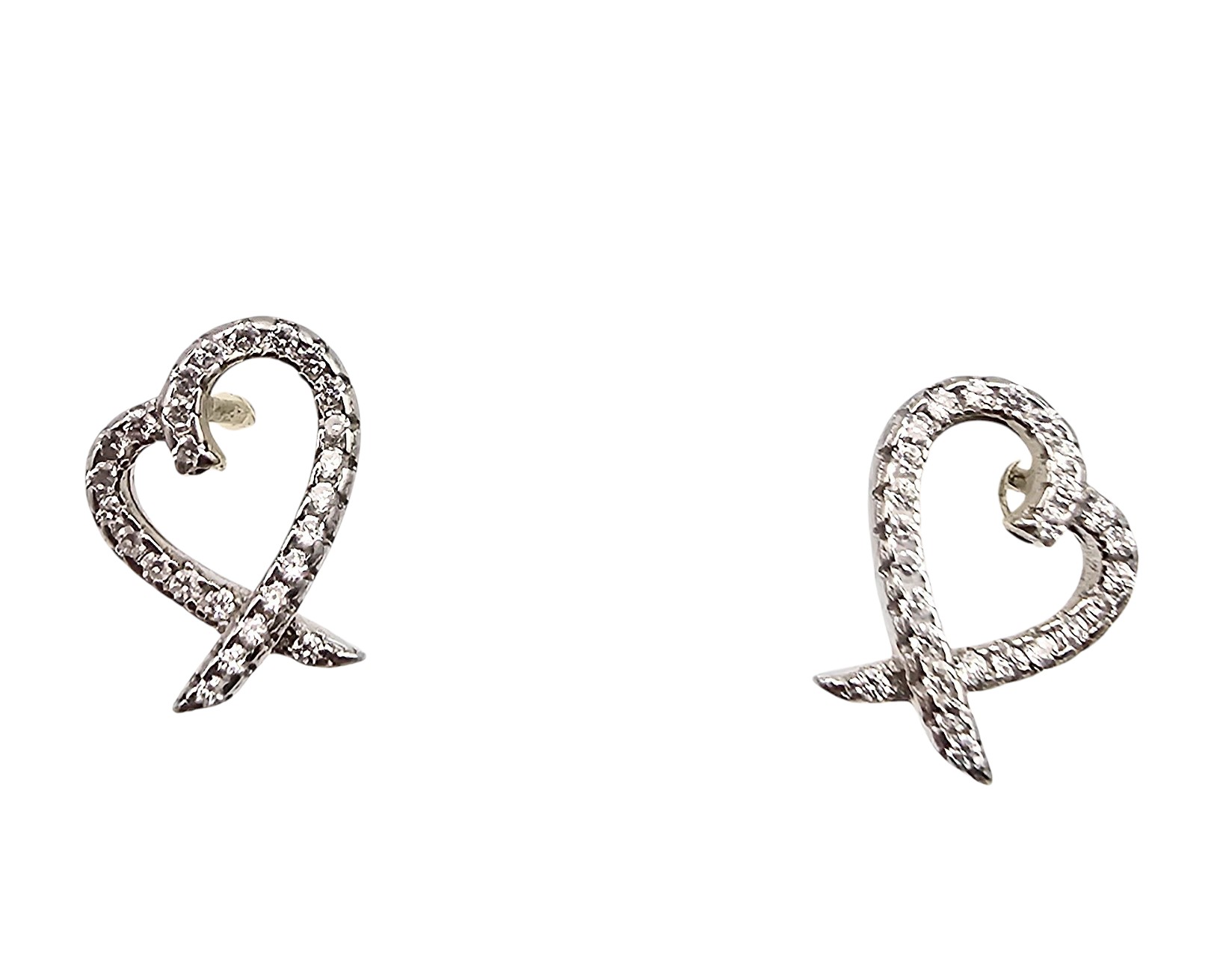 Rhinestone Sterling Silver Heart Earrings 1.7 G