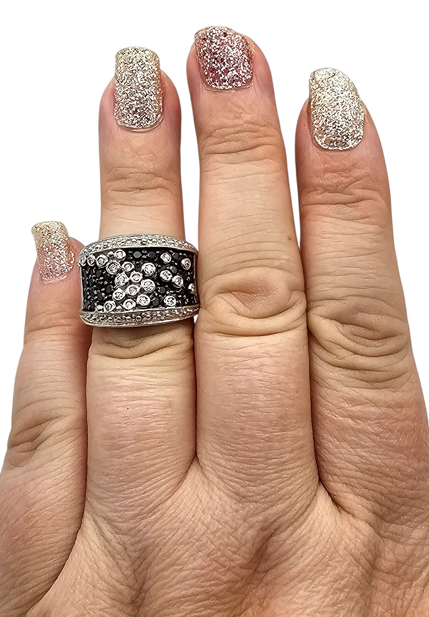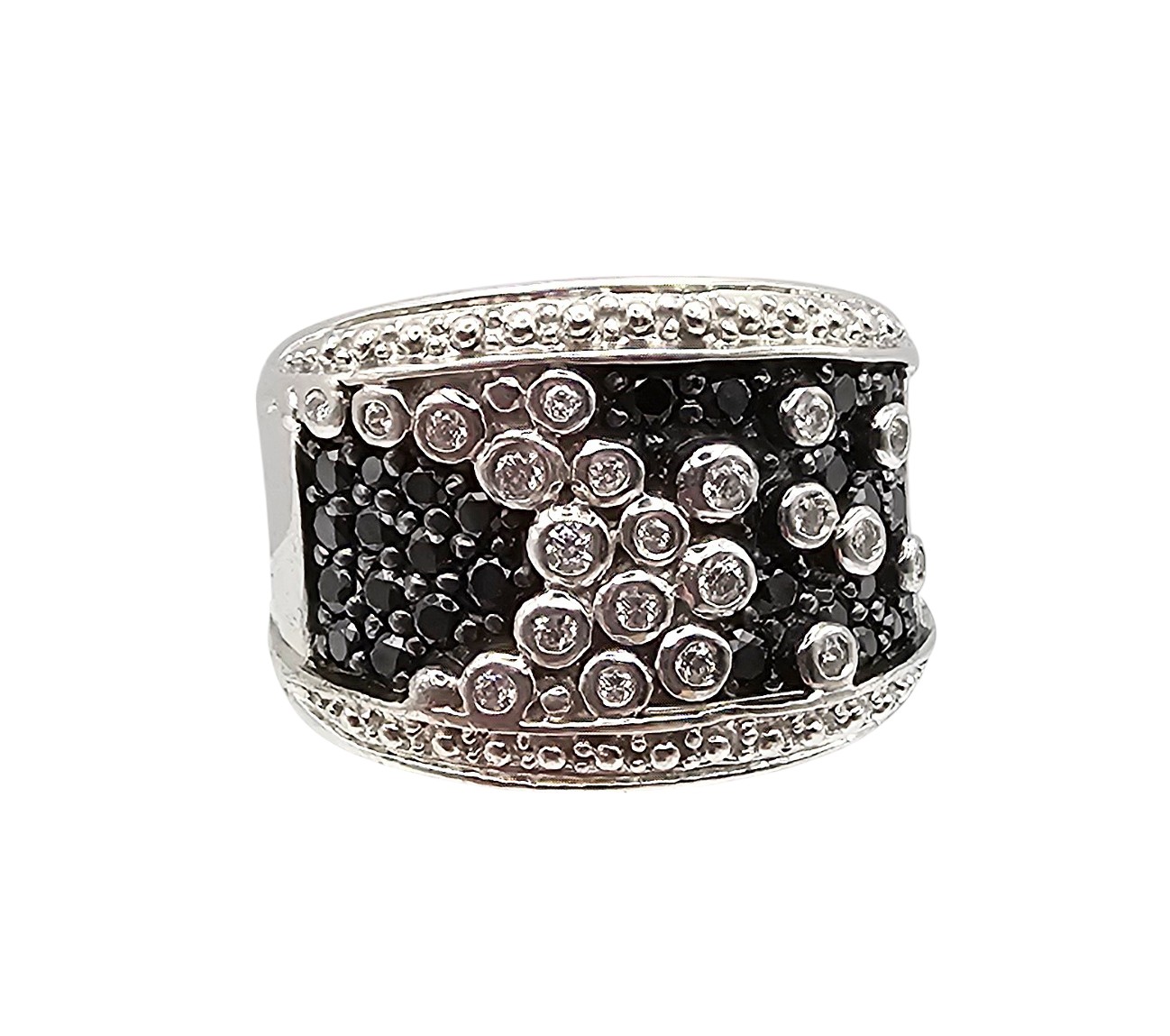 Rhinestone Sterling Silver Black White Cocktail Ring Size 6.75 9.2 G