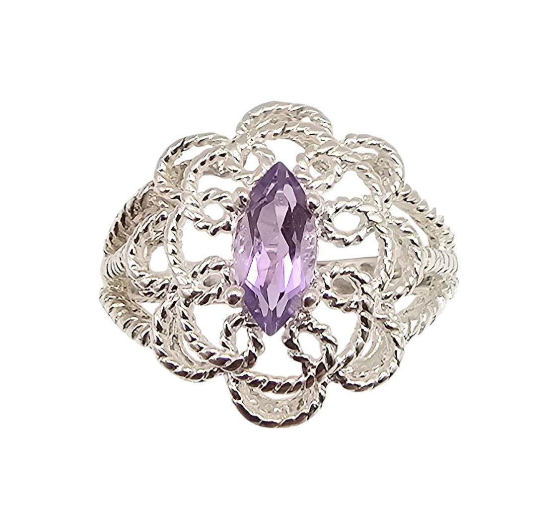 NV Amethyst Sterling Silver Cocktail Ring Size 7.75 3.5 G