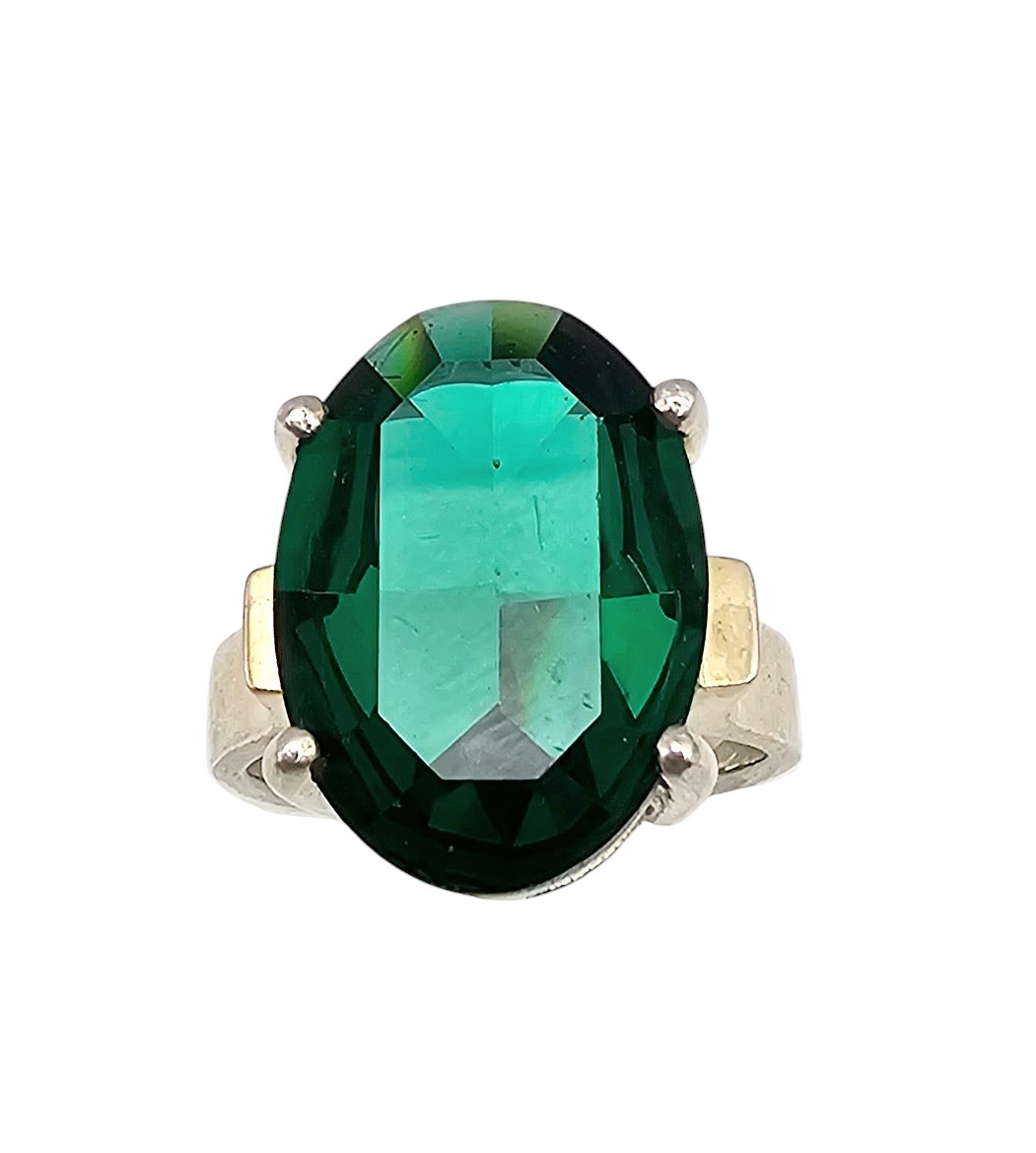 CW Rhinestone Sterling Silver Cocktail Ring Size 7.25 9 G
