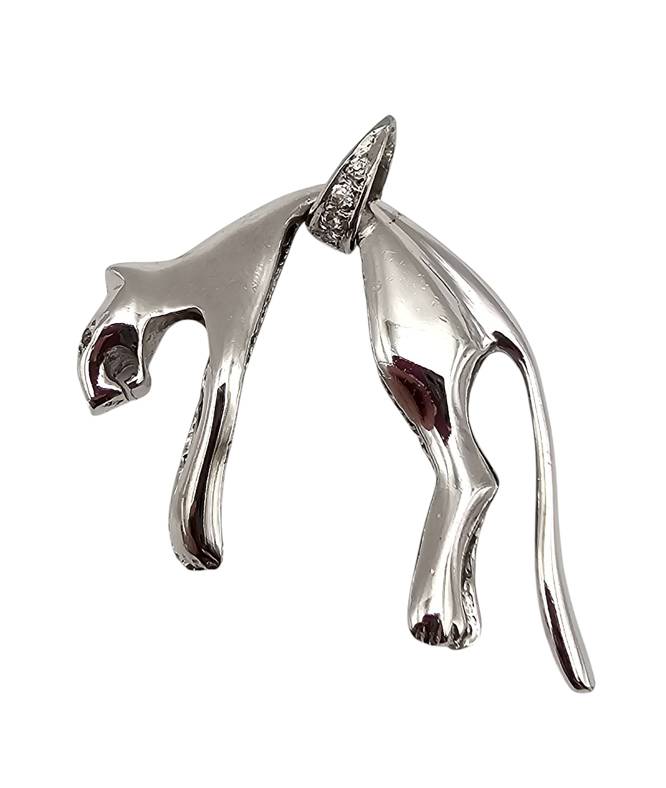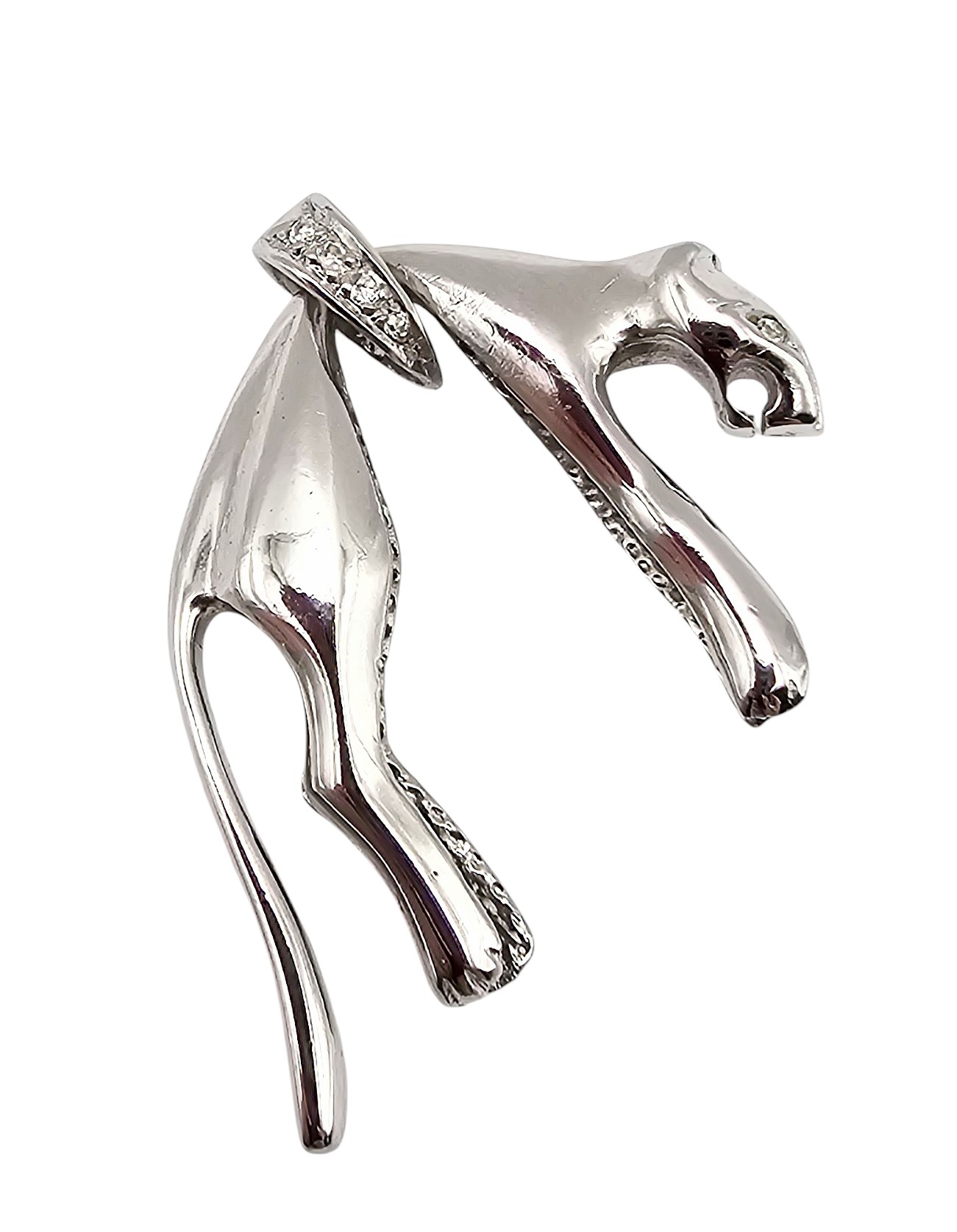 NV Rhinestone Sterling Silver Panther Big Cat Pendant 9.1 G