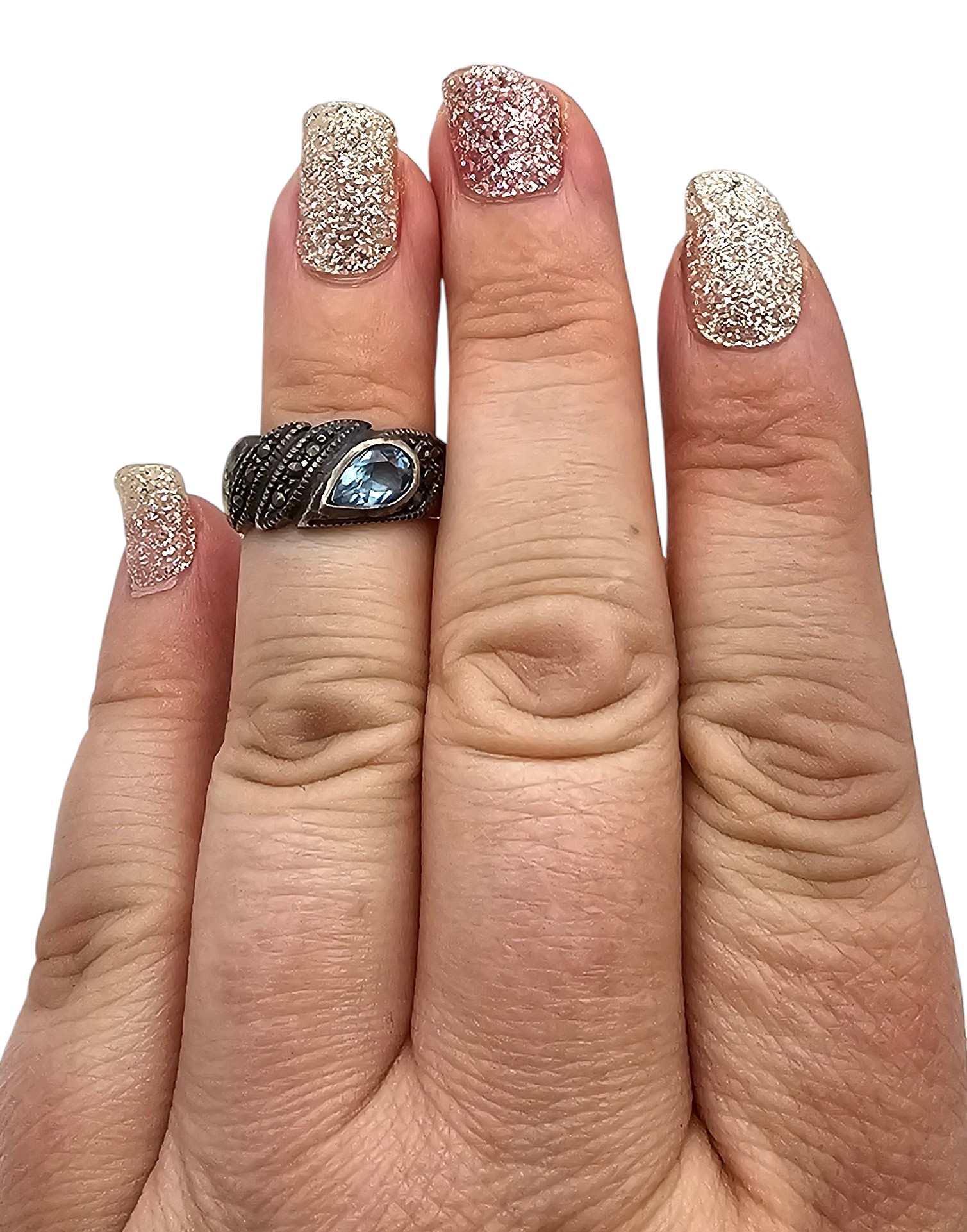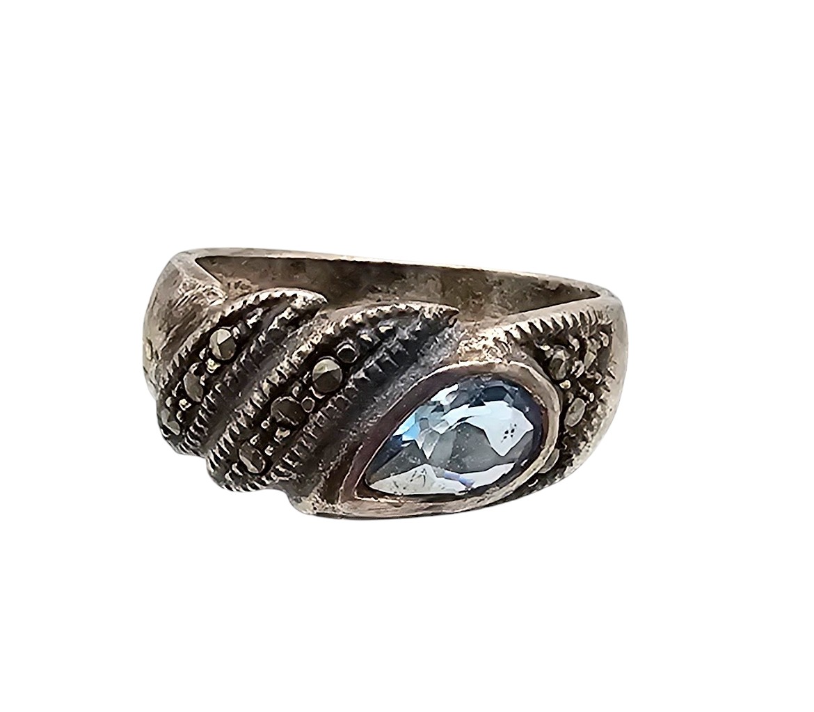 Rhinestone Marcasite Sterling Silver Cocktail Ring Size 5.25 4.6 G
