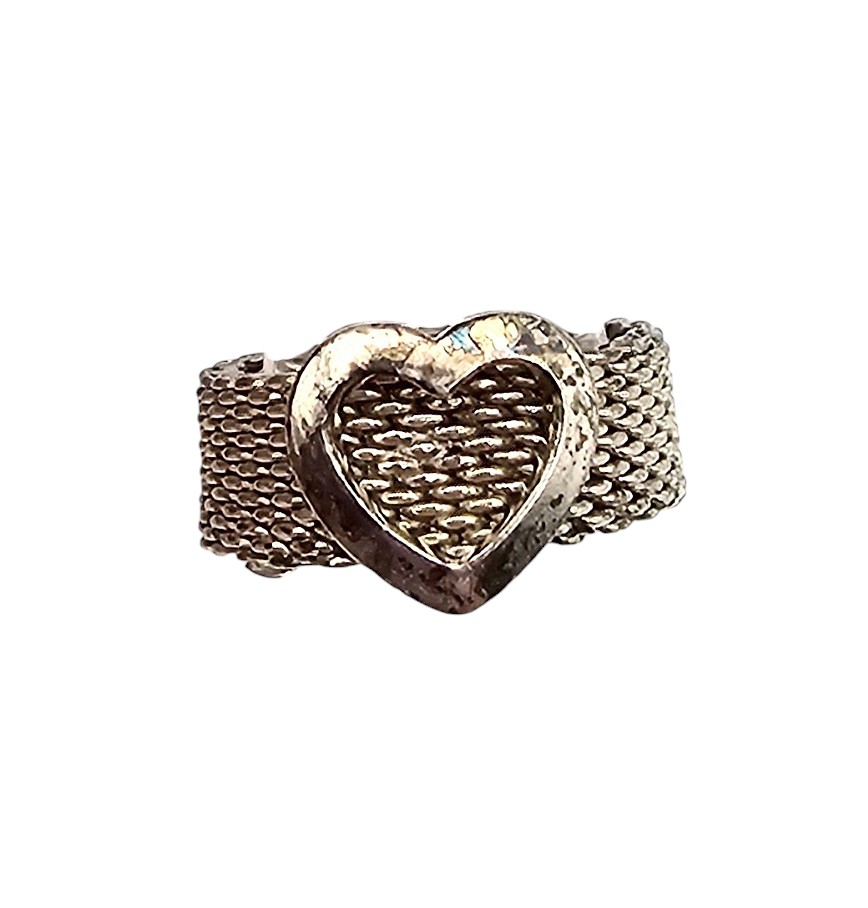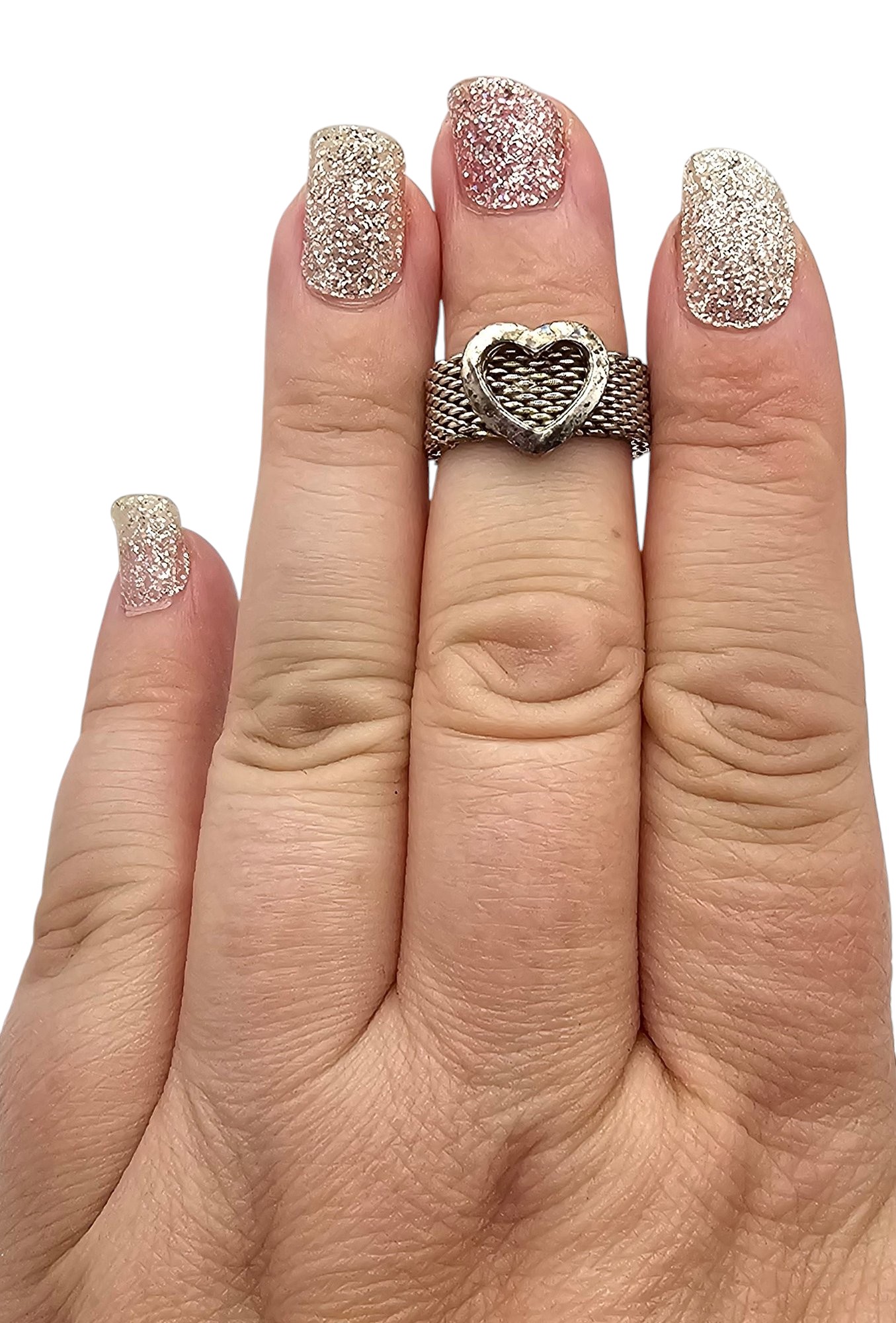 Sterling Silver Heart Mesh Ring size 6.25 5.7 G