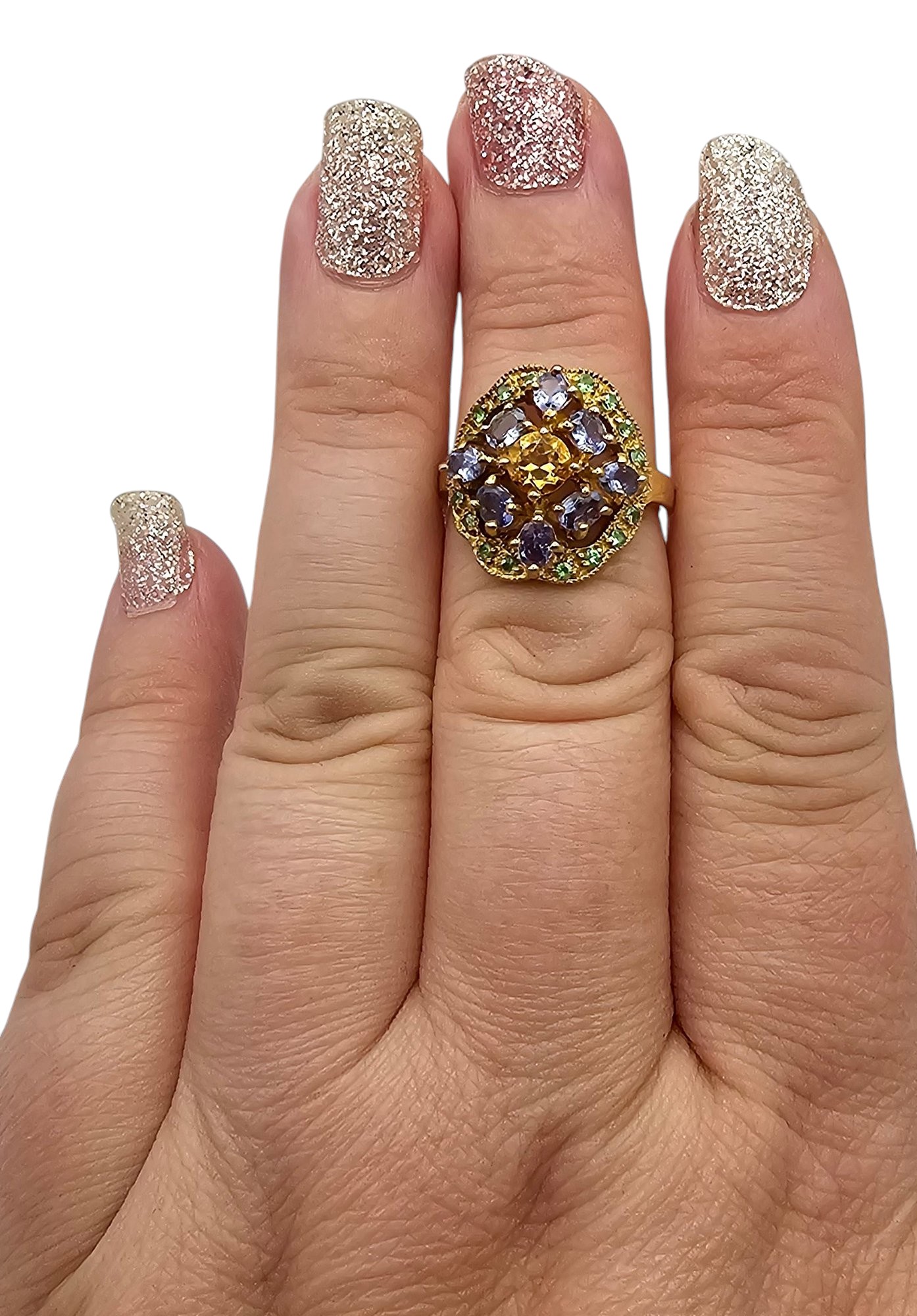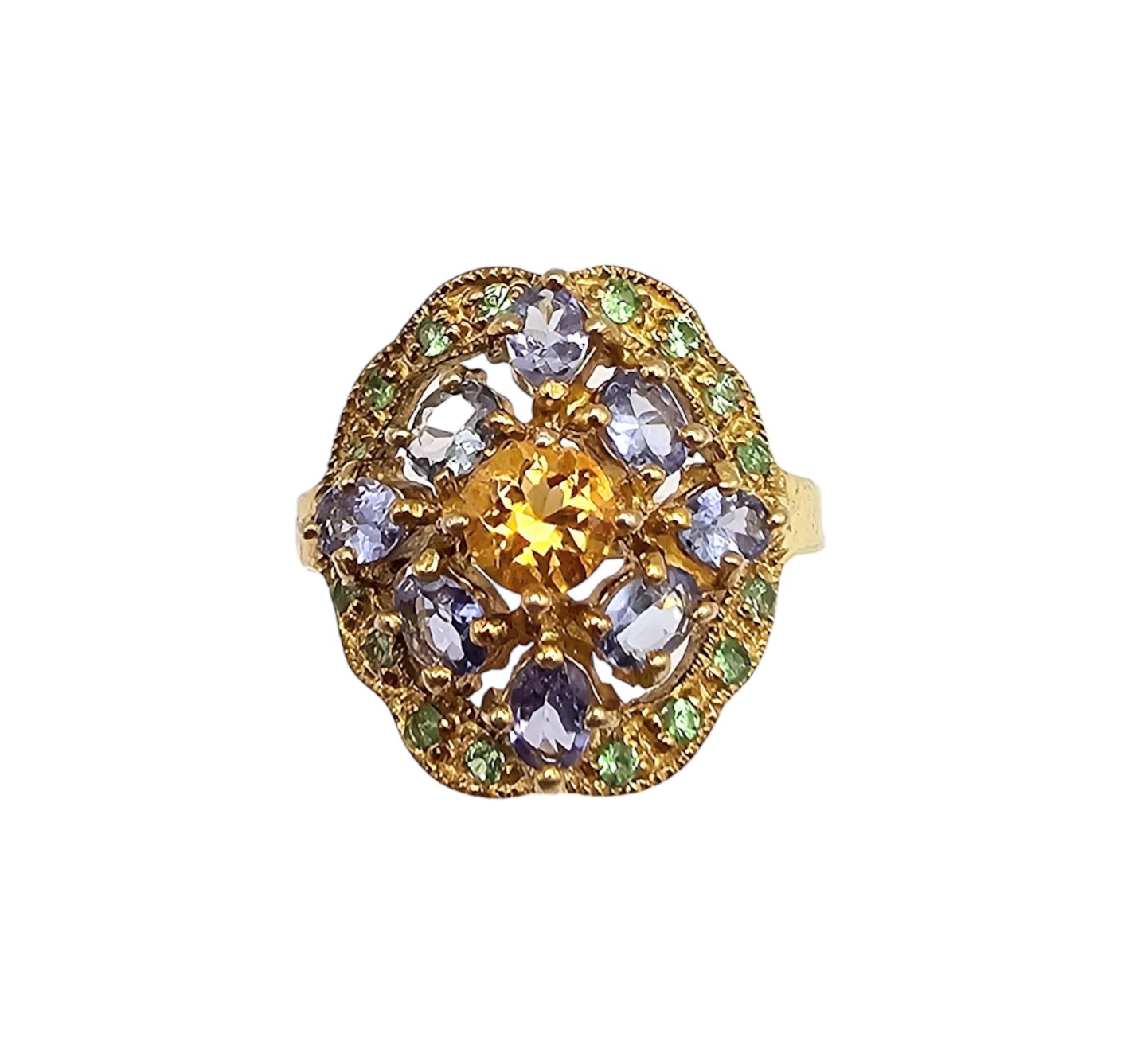 Gemstone Gold Over Sterling Silver Cocktail Ring Size 7 4.3 G