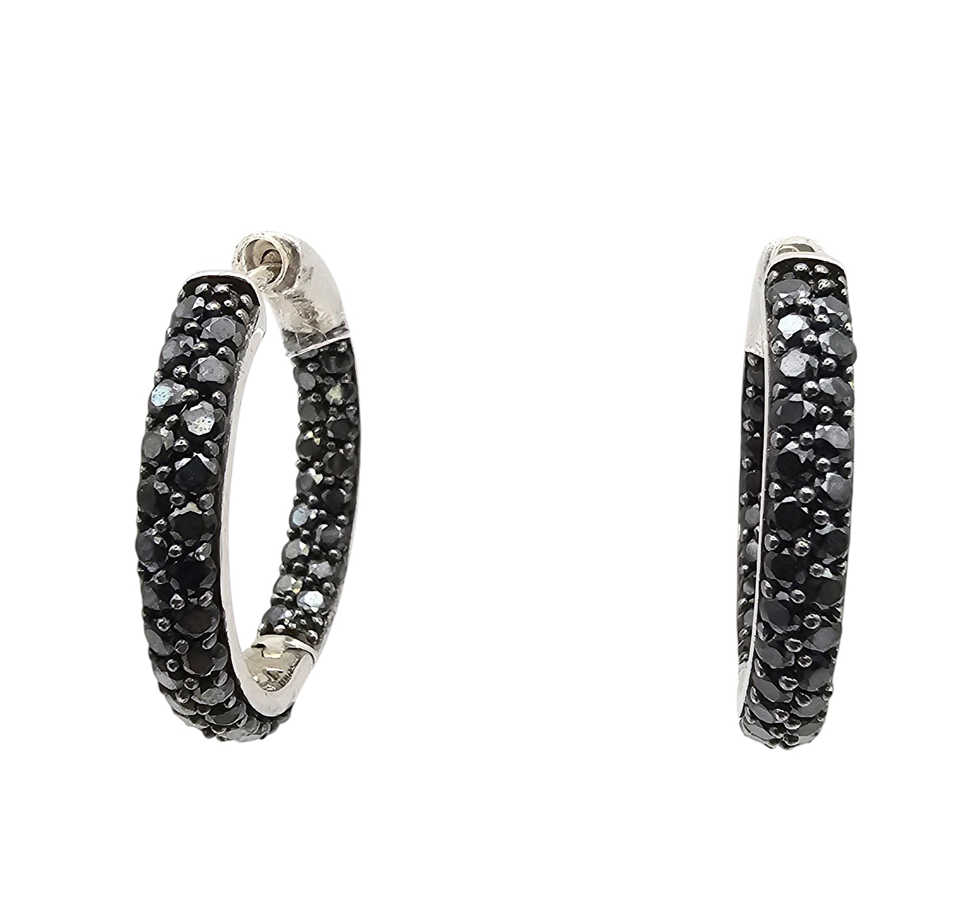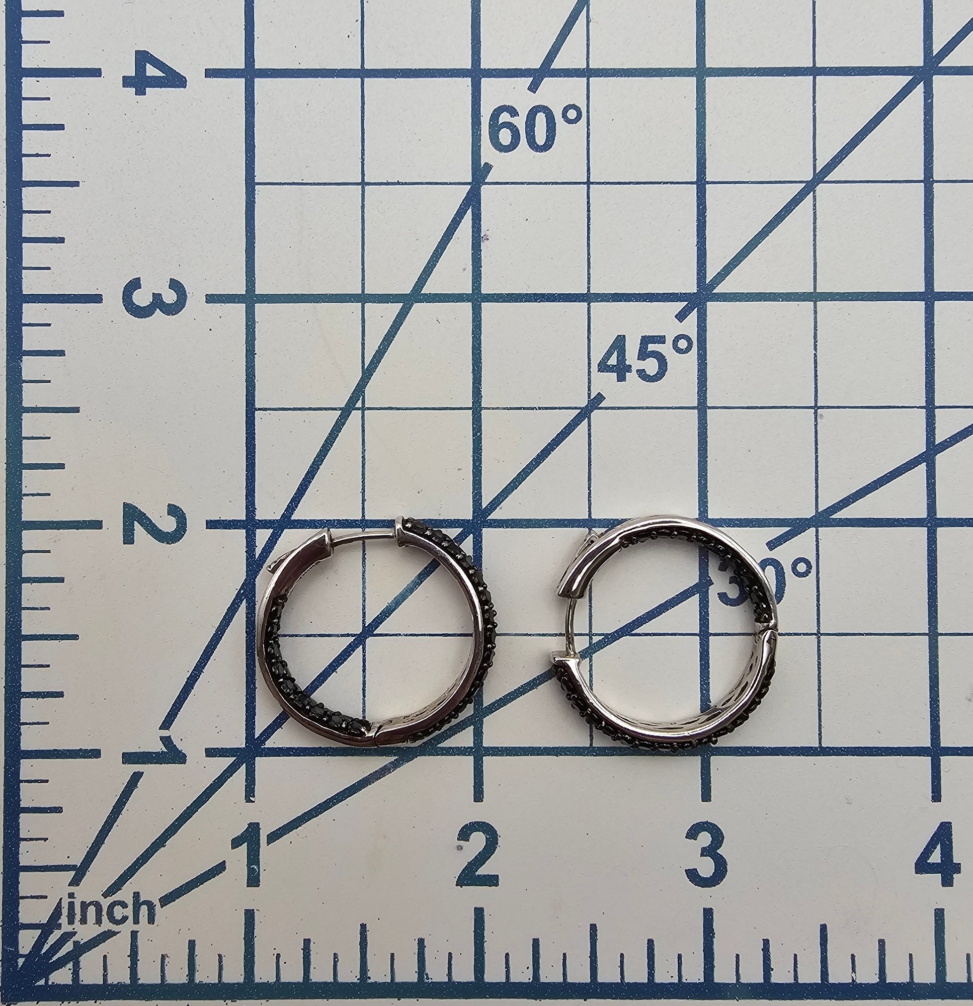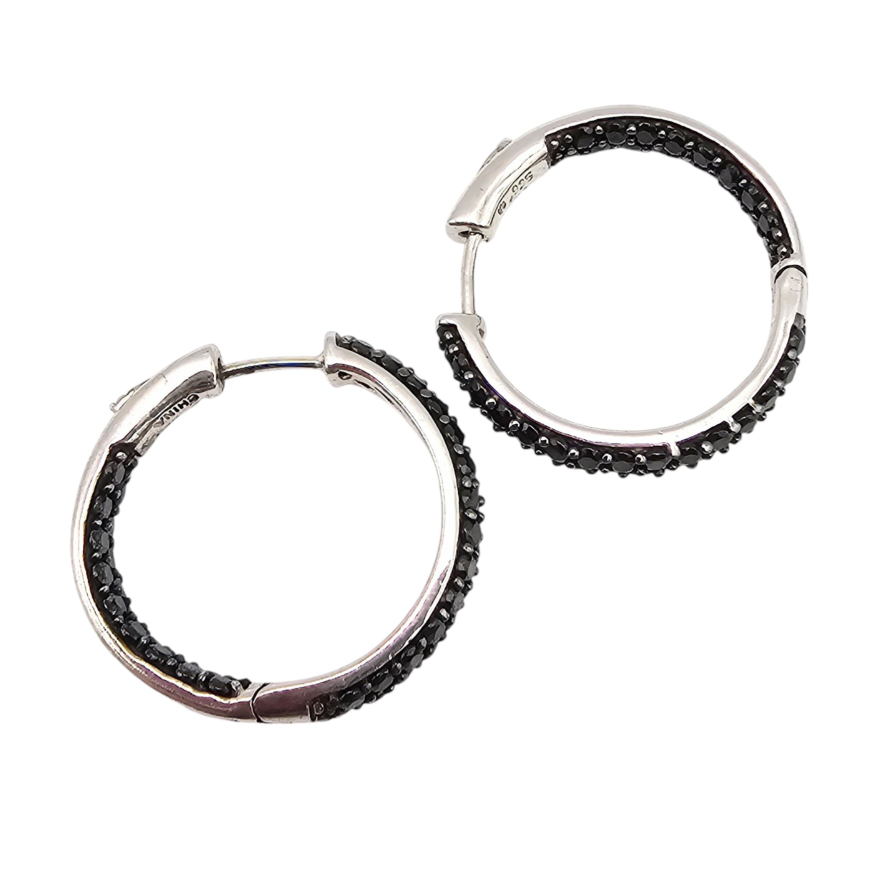 Black Stone Sterling Silver Hoop Earrings 7.1 G