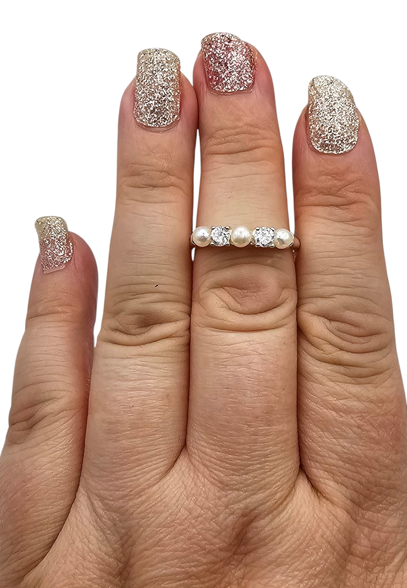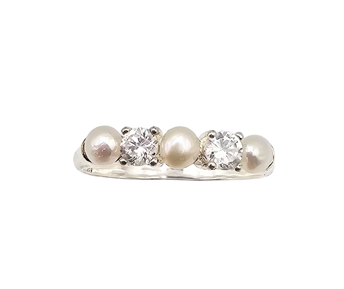 NV Pearl Rhinestone Sterling Silver Cocktail Ring Size 8.5 2.5 G