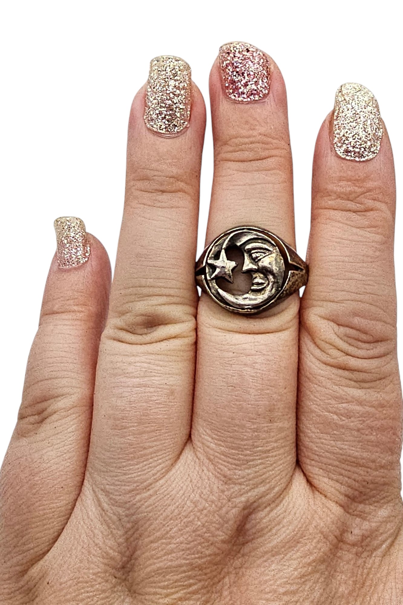 Sterling Silver Moon Star Spinner Ring size 8 6 G