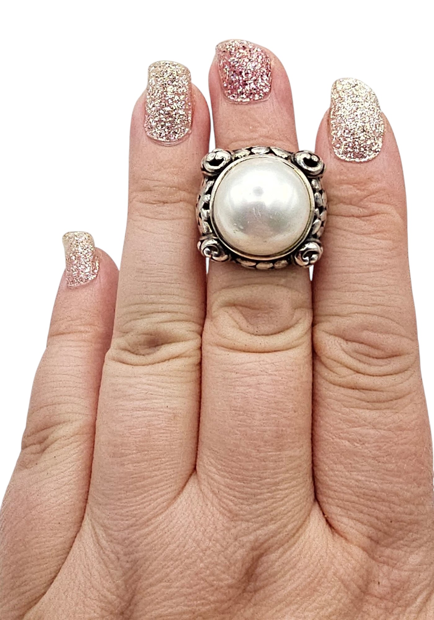 Faux Pearl Sterling Silver Statement Ring Size 6.5 12.8 G