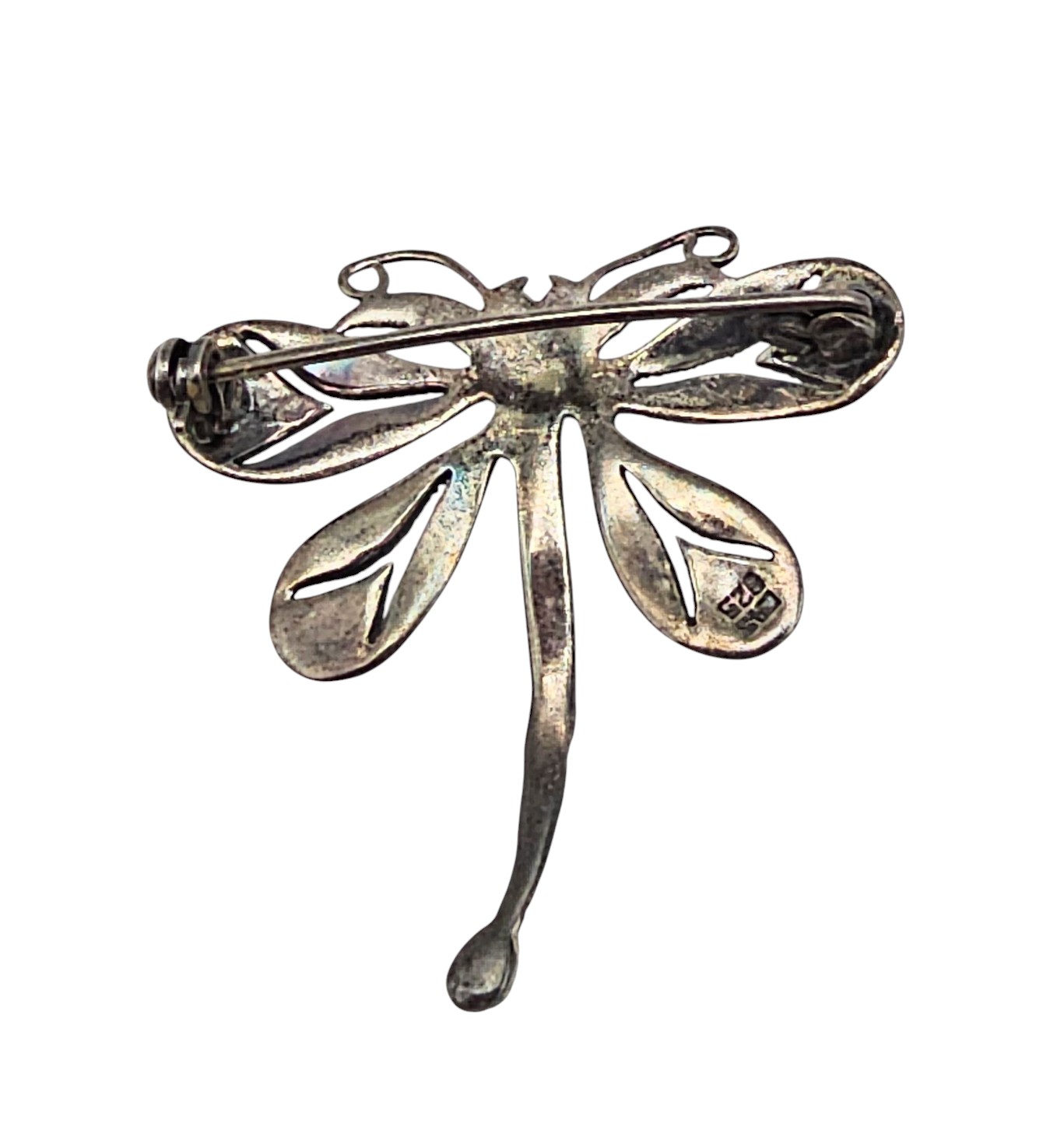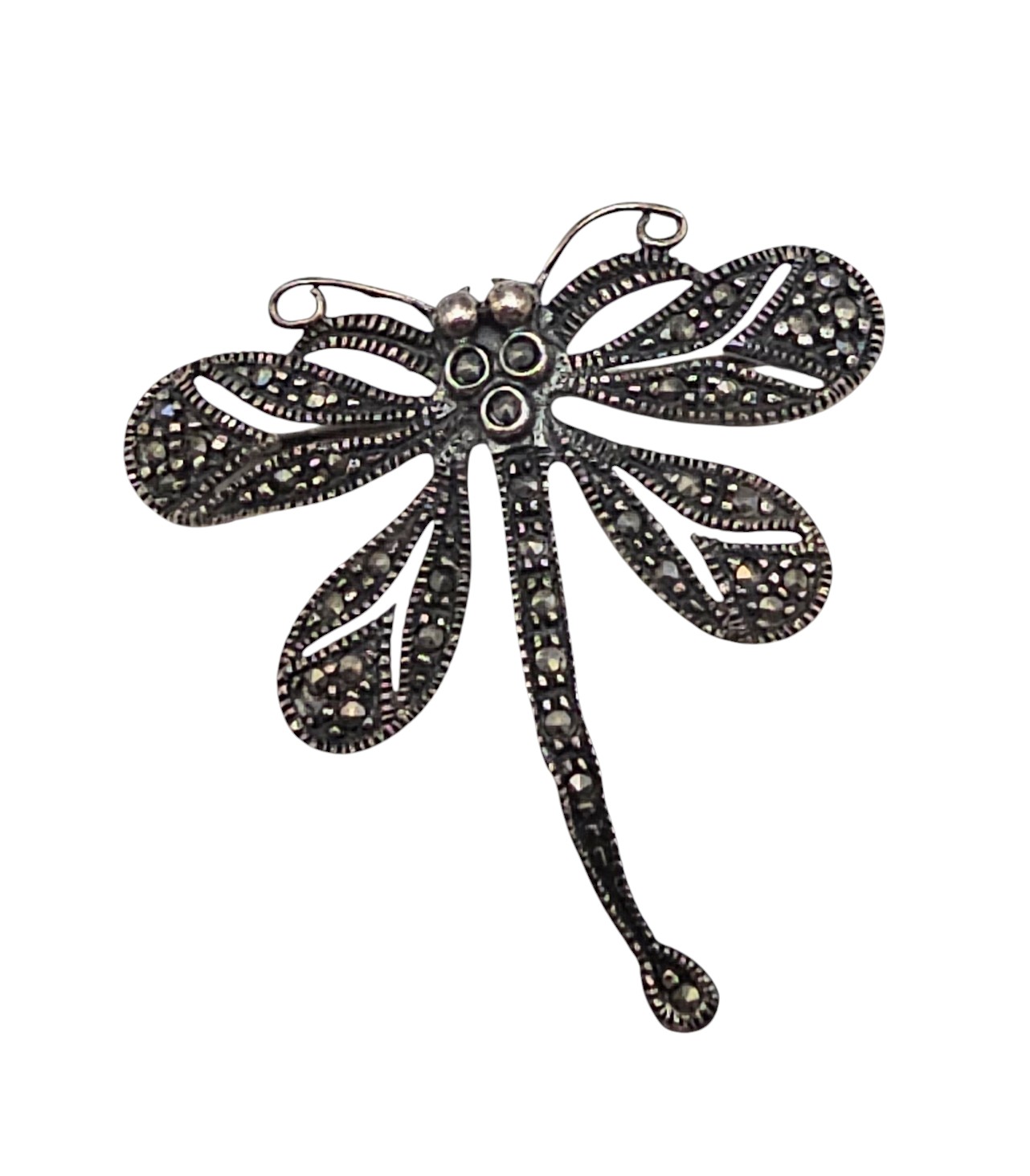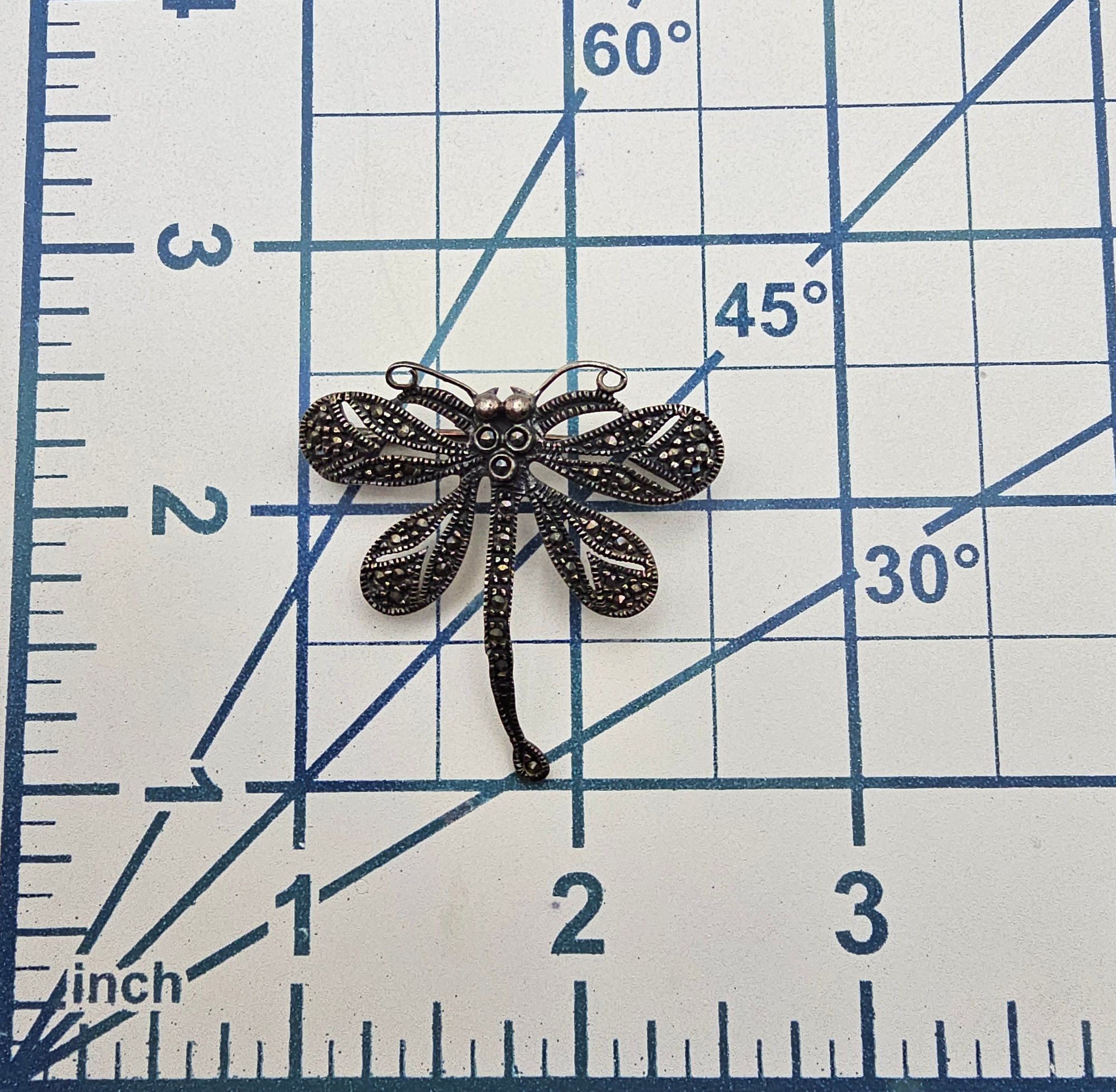 FAS Marcasite Sterling Silver Dragonfly Brooch 5.4 G