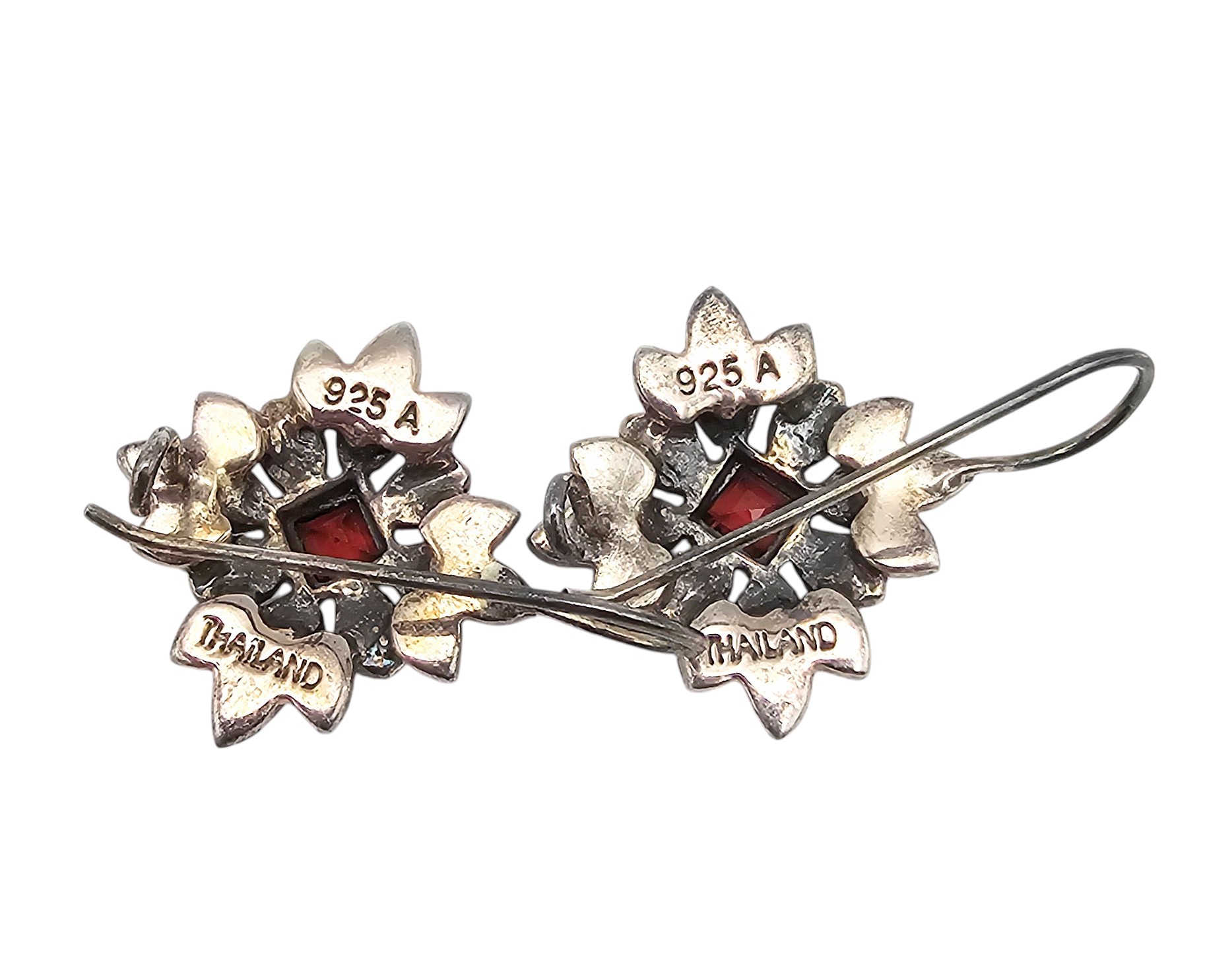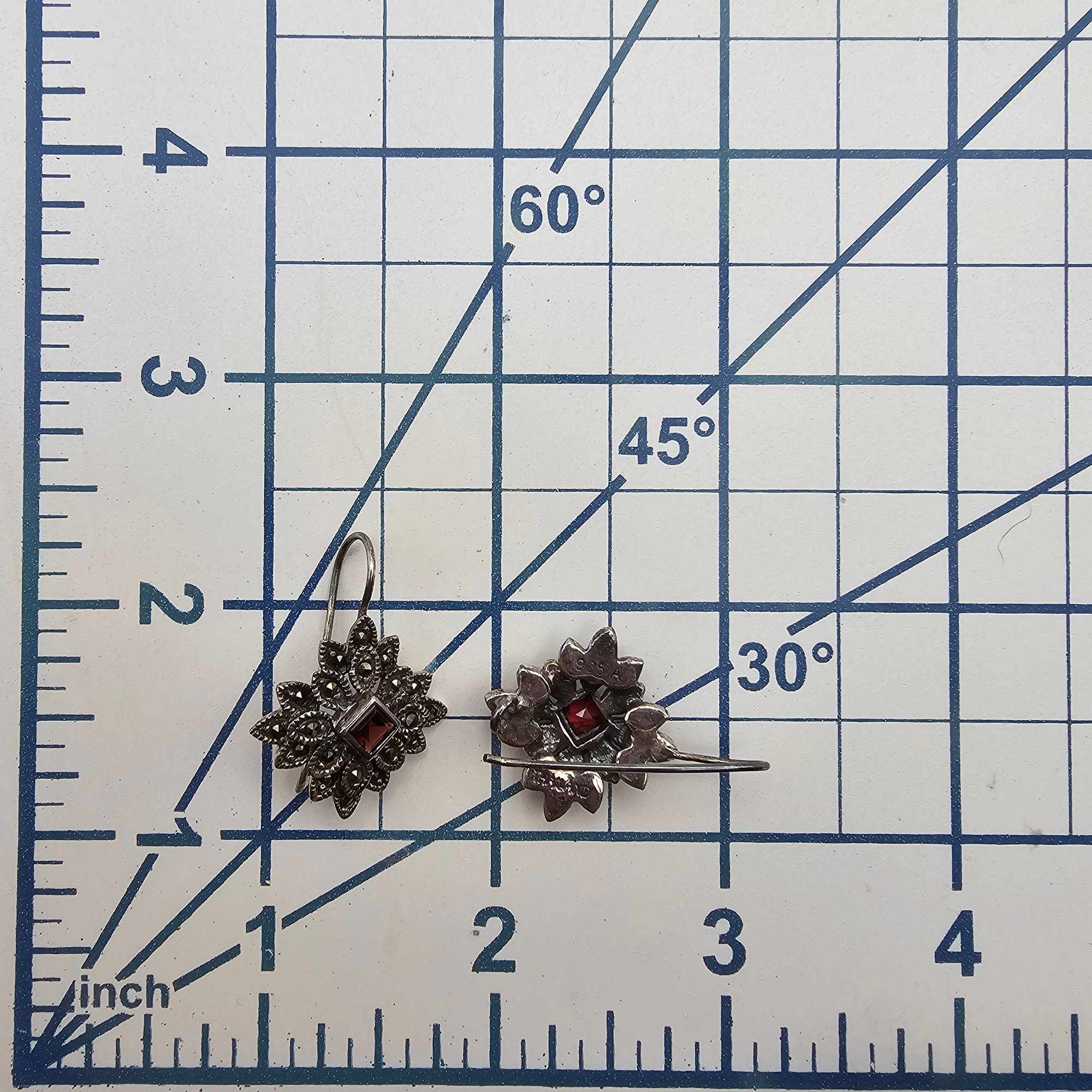 Marcasite Garnet Sterling Silver Drop Dangle Earrings 6.6 G