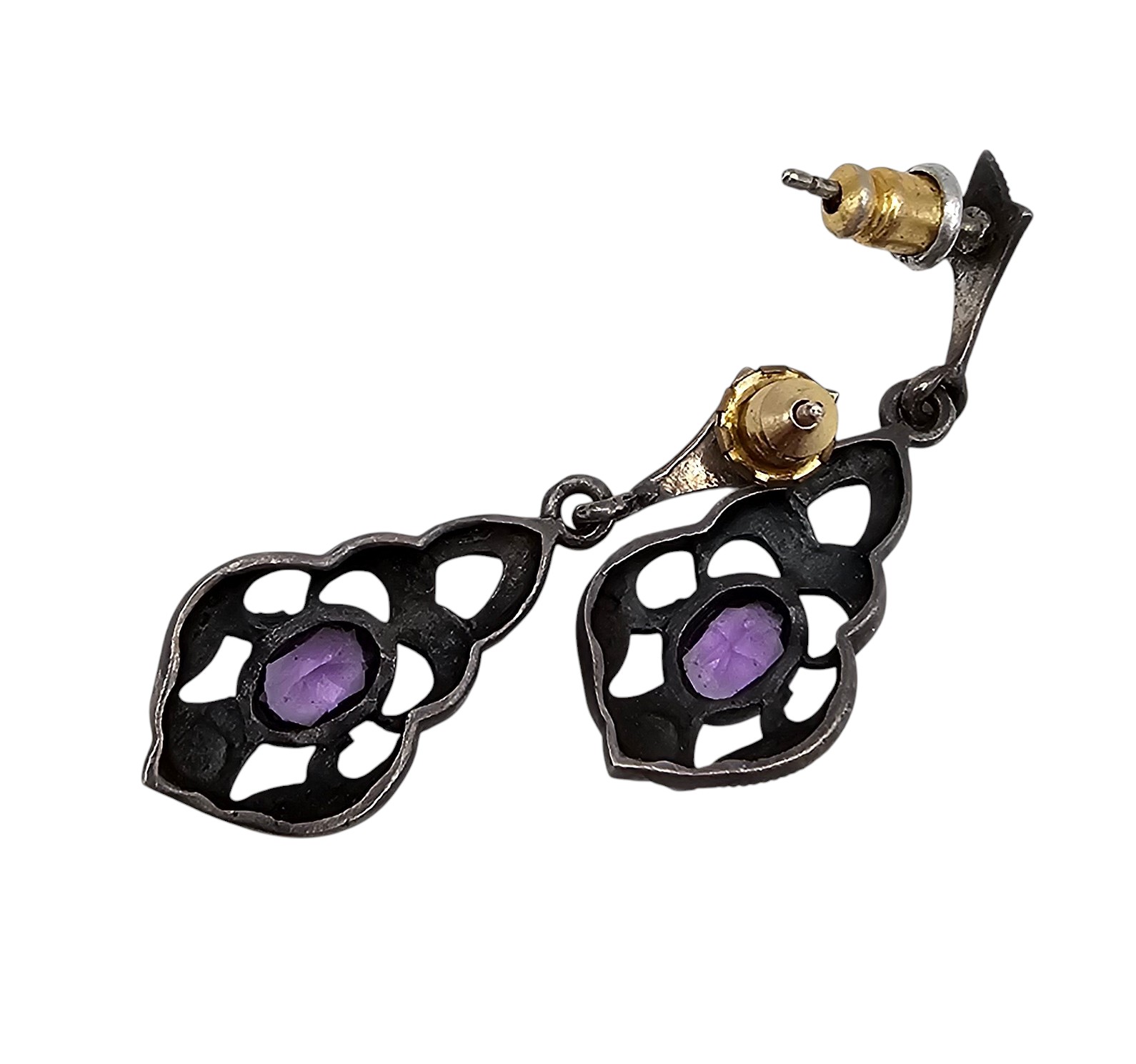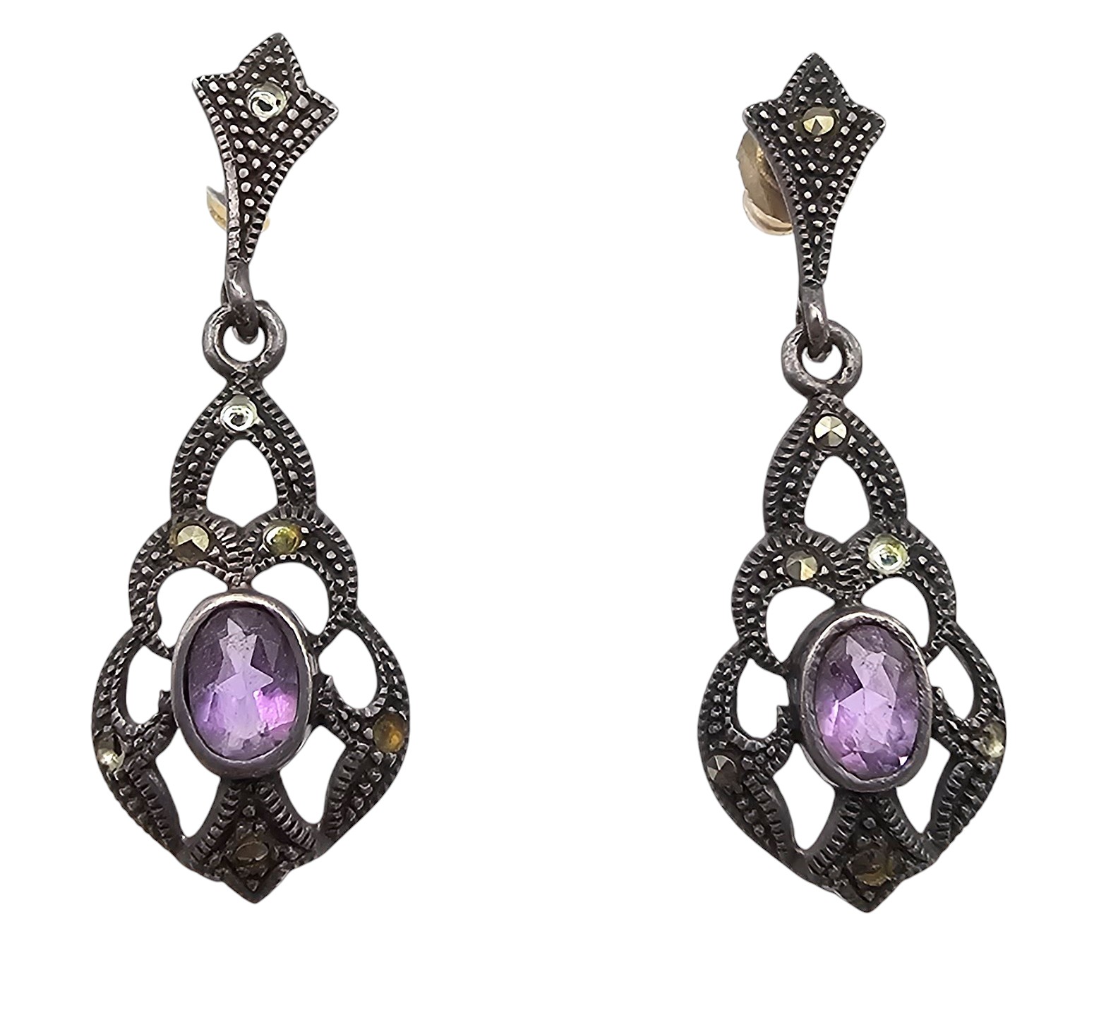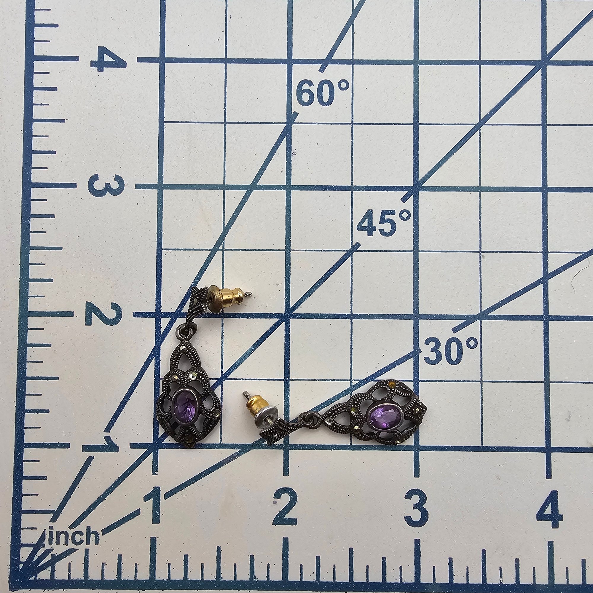 Amethyst Marcasite Sterling Silver Drop Dangle Earrings 4 G