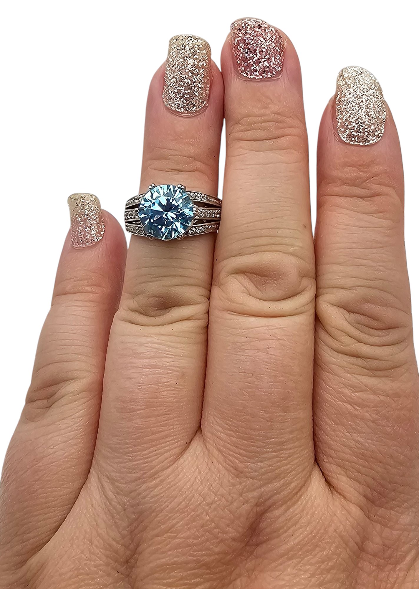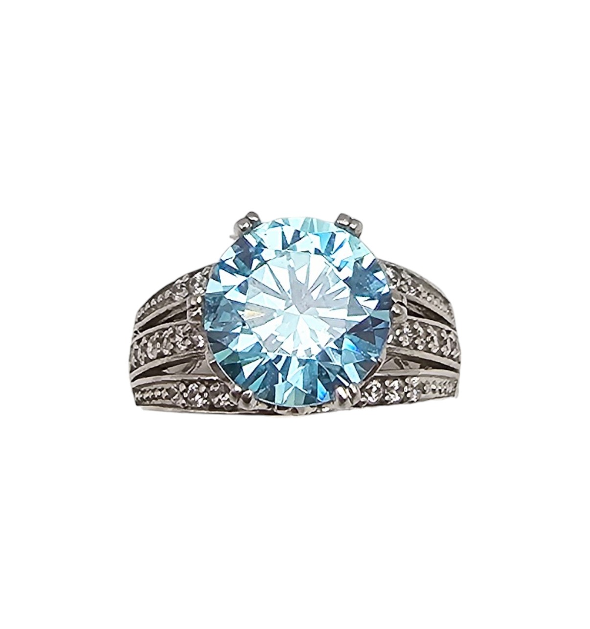 ET Rhinestone Sterling Silver Cocktail Ring Size 5 5.2 G