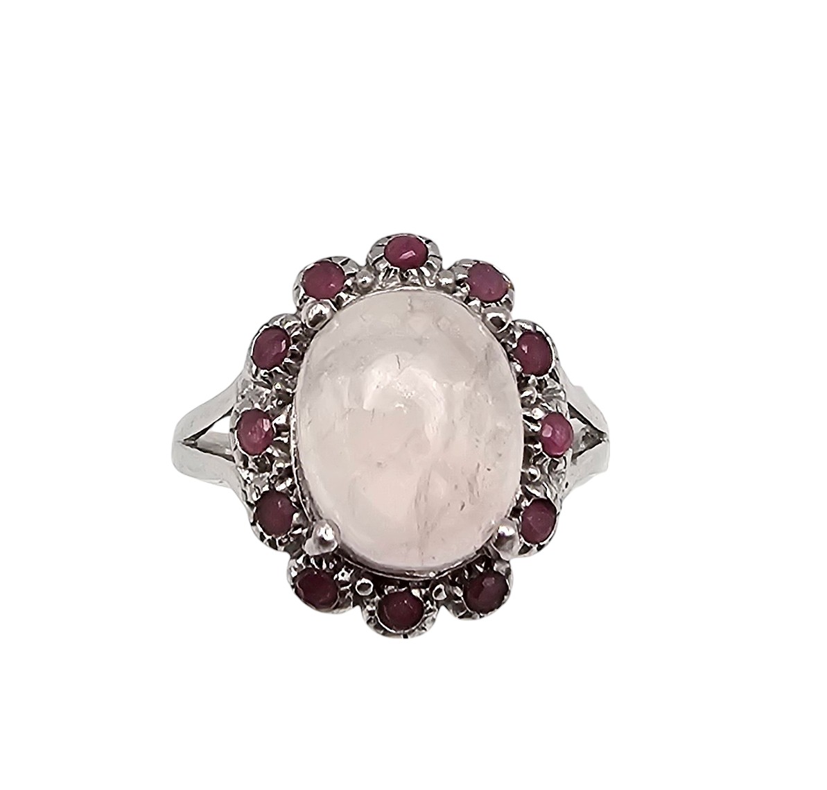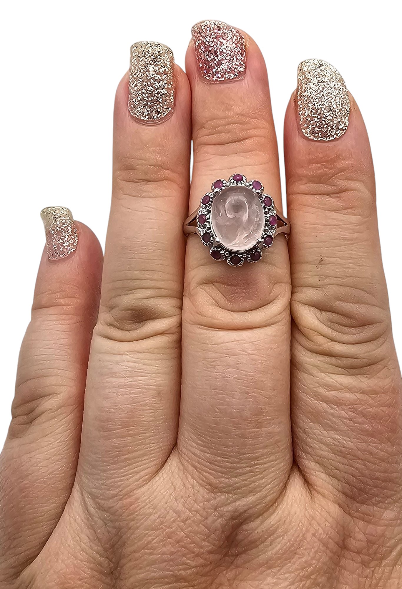 Rose Quartz Sterling Silver Cocktail Ring Size 7 3.4 G