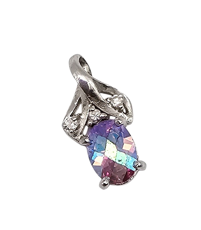 HAN Iridescent Rhinestone Sterling Silver Pendant 1.5 G