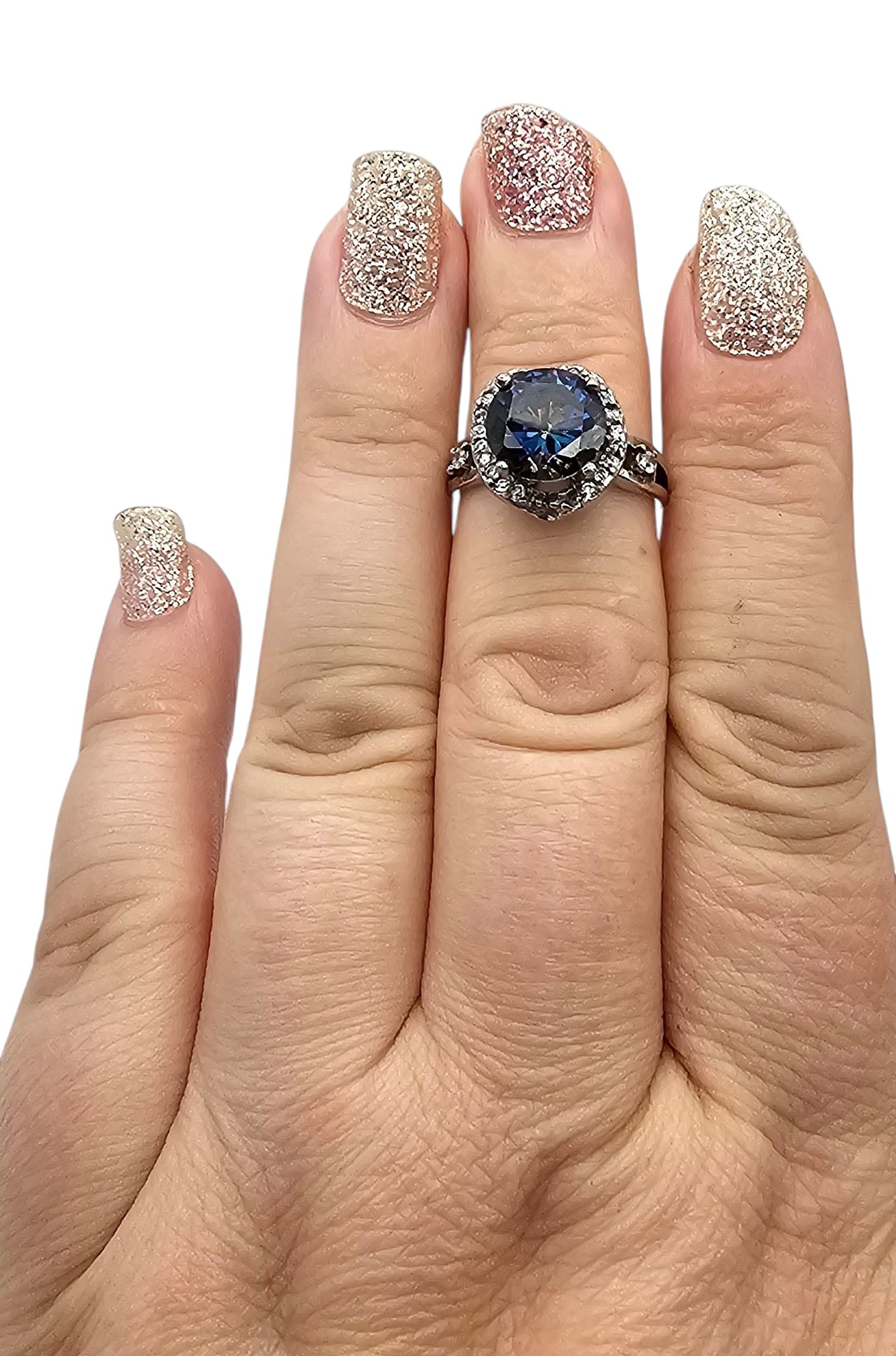 Rhinestone Sterling Silver Cocktail Ring Size 6.75 4.8 G