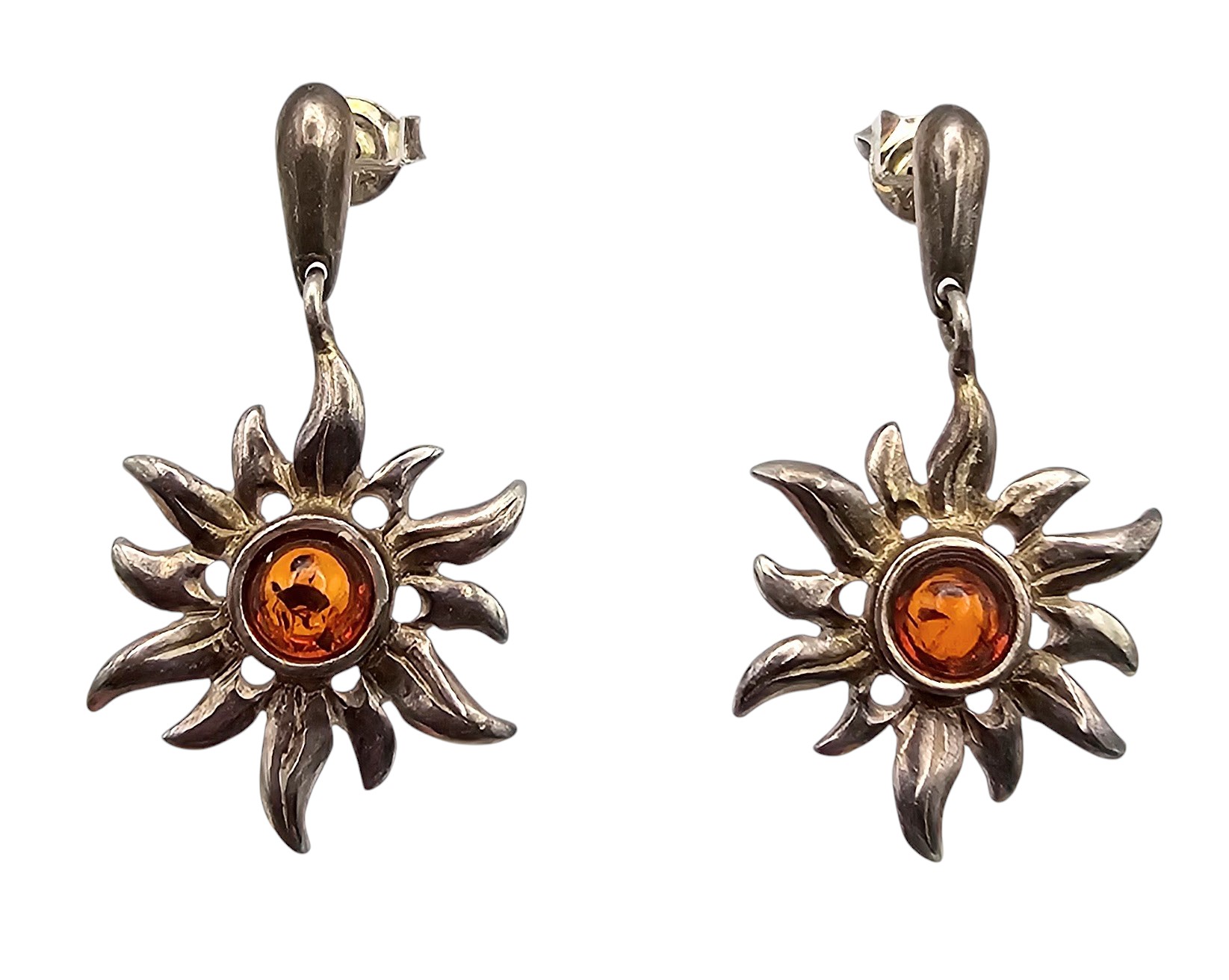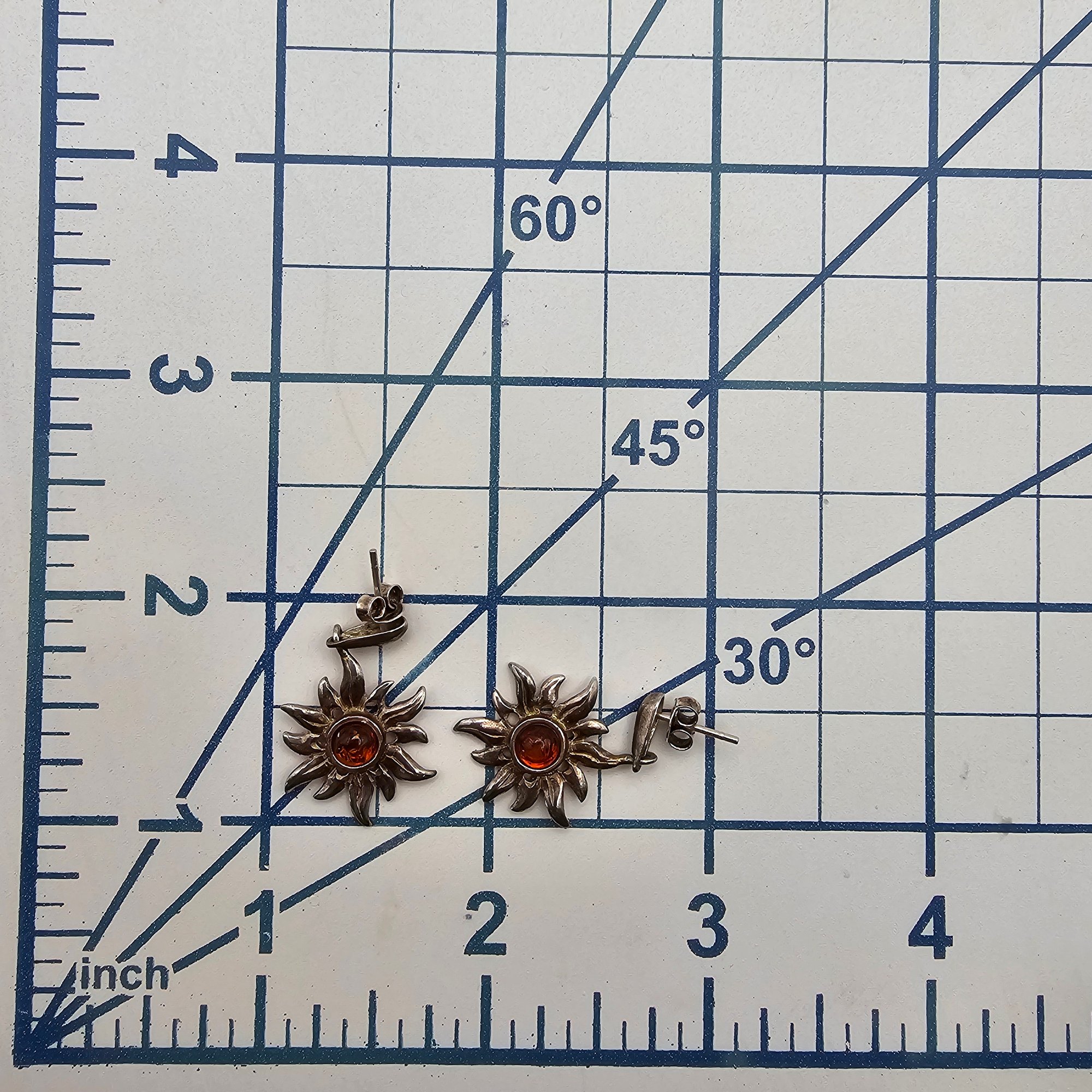 Amber Sterling Silver Sunflower Drop Dangle Earrings 4 G