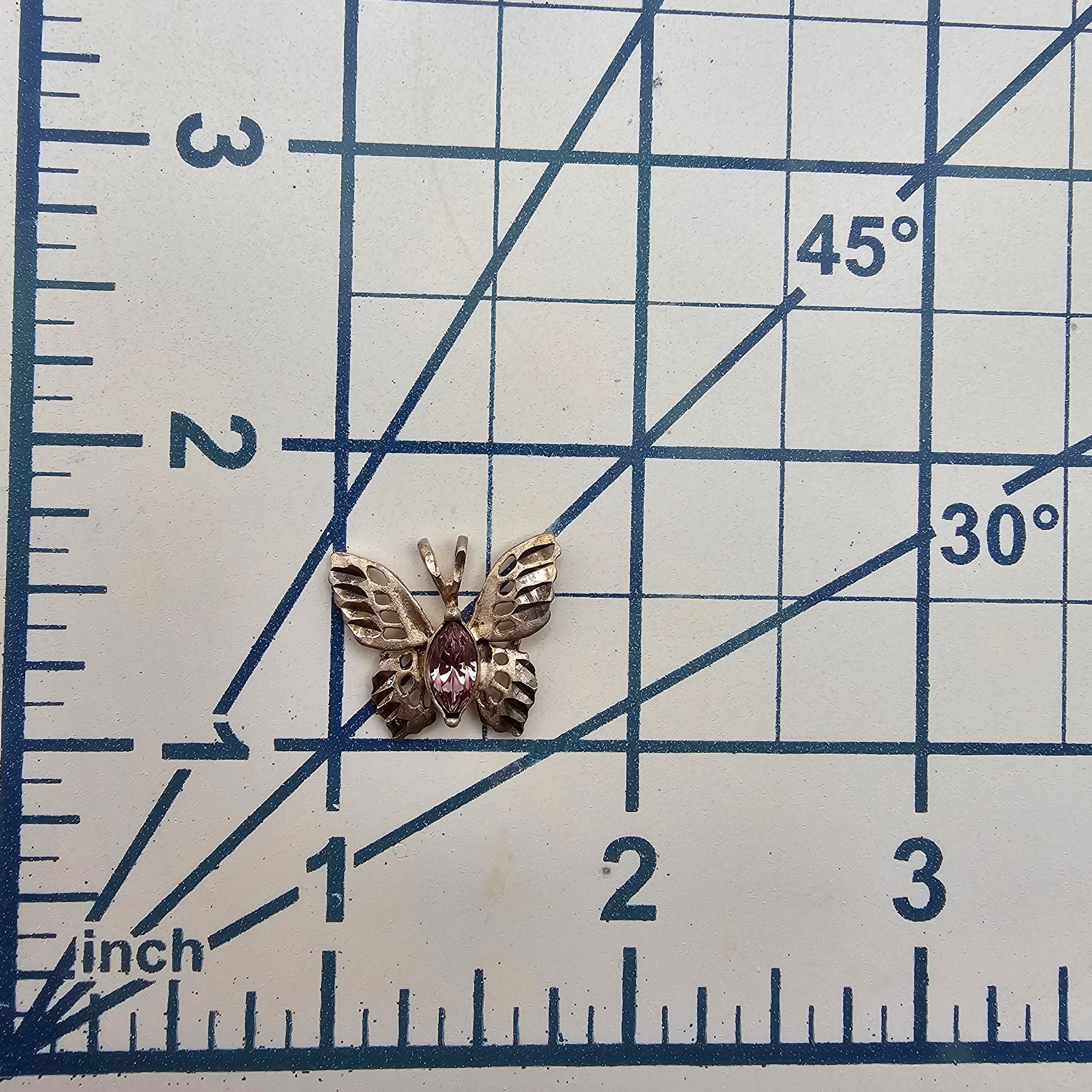 By Rhinestone Sterling Silver Butterfly Pendant 1.8 G