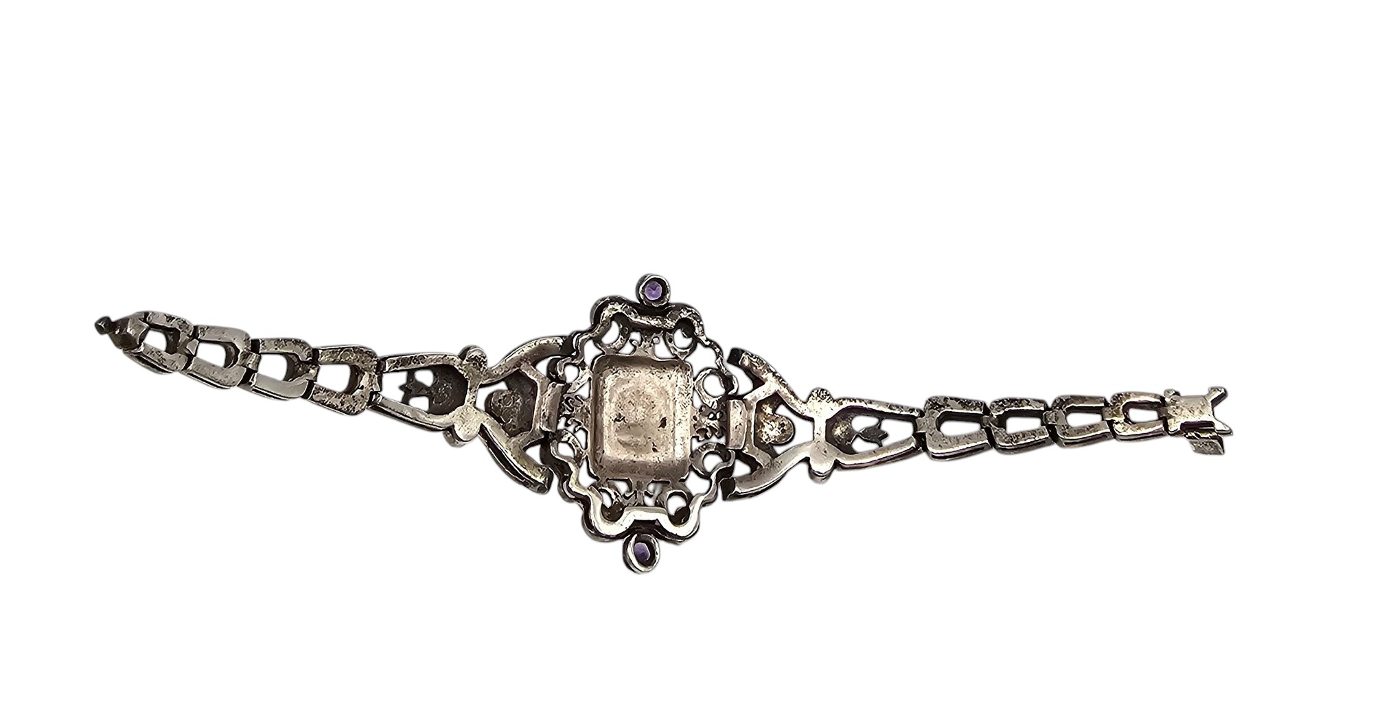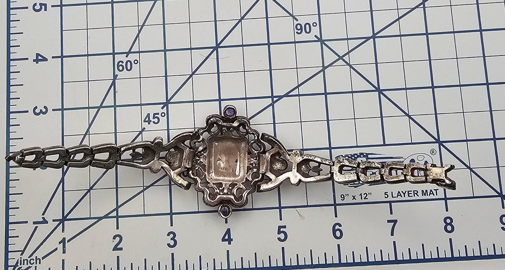 Amethyst Marcasite Onyx Sterling Silver Bracelet 54.1 G