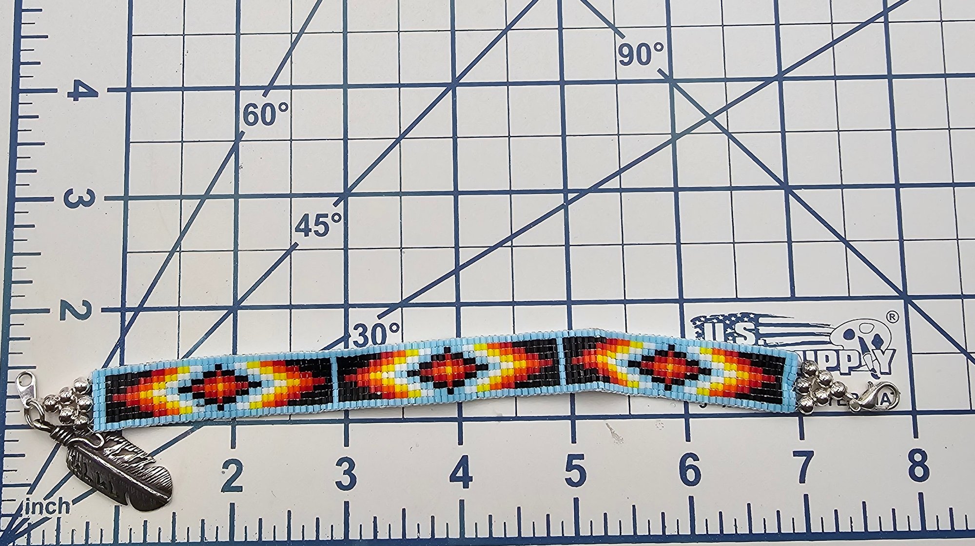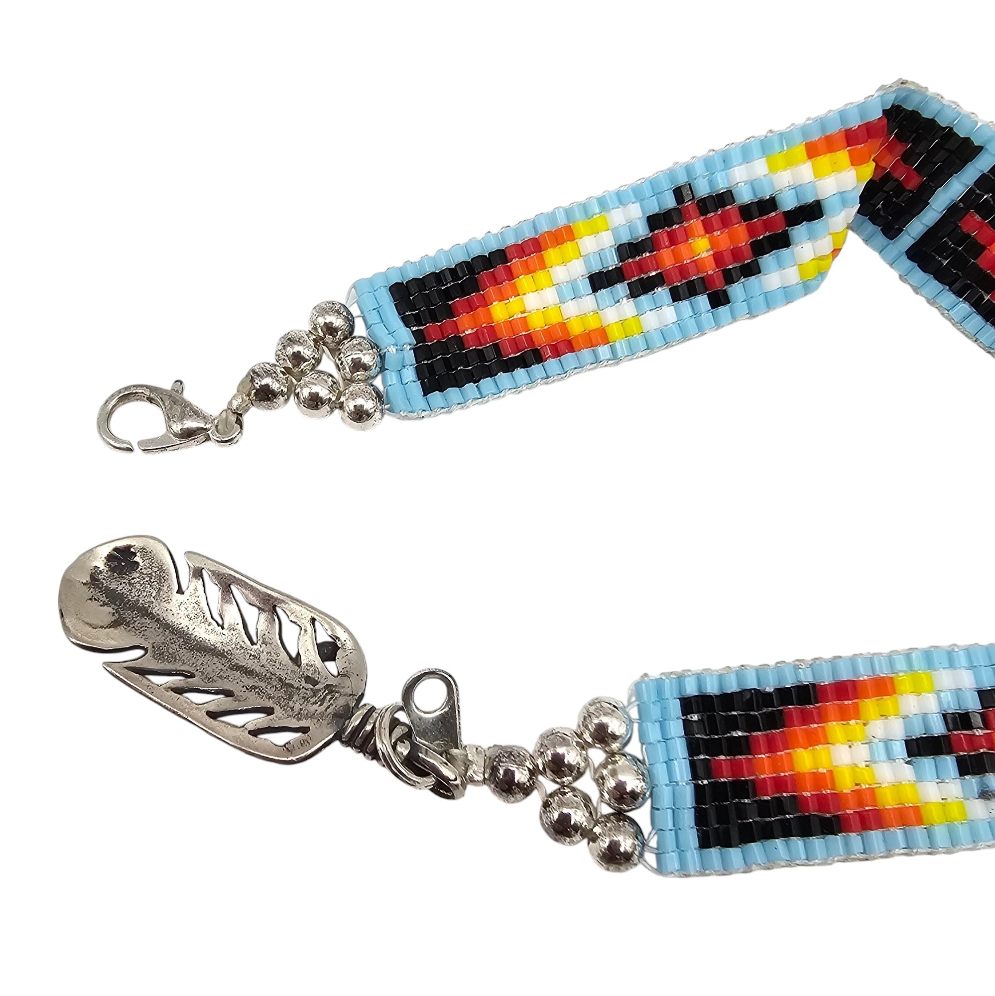 Southwestern Micro Bead Bracelet with Sterling Silver Feather Charm 8.2 G