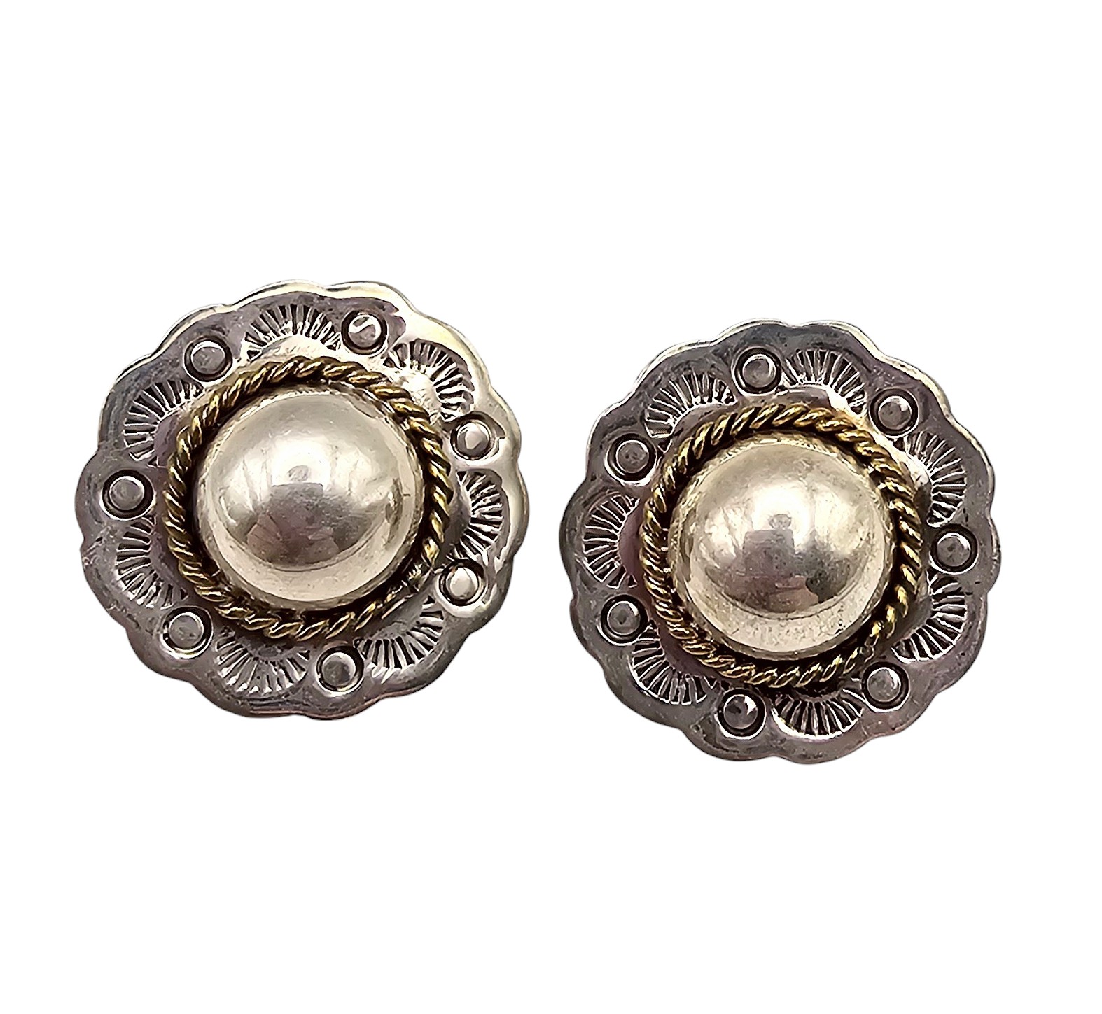 Southwestern Sterling Silver Stamped Two-Tone Earrings 12.2 G