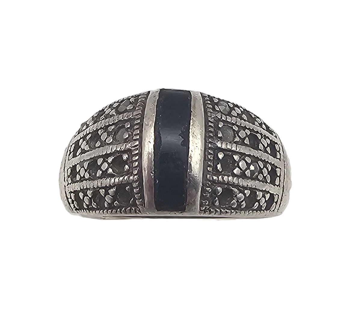 Onyx Marcasite Sterling Silver Ring Size 6.25 5.3 G