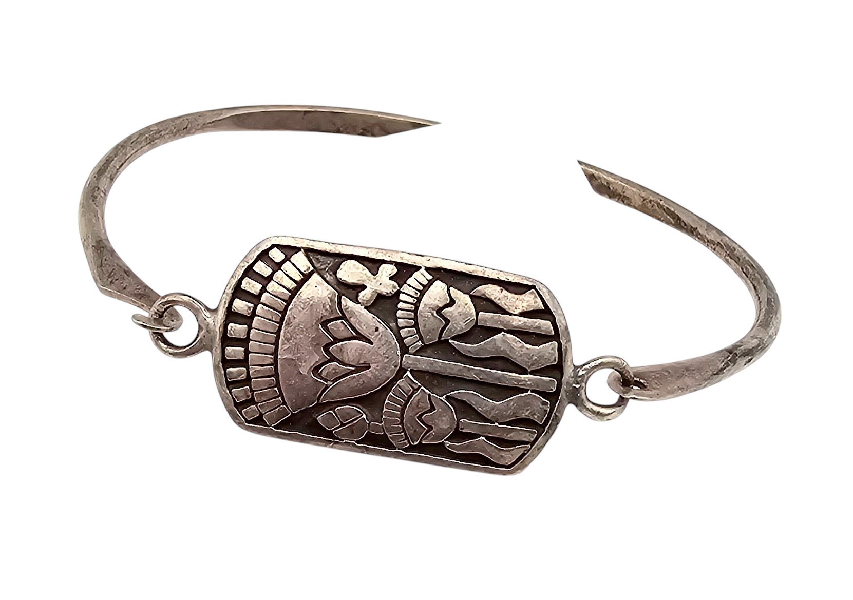 PRECIV Sterling Silver Flower Eye Hook Bangle Bracelet 10.2 G