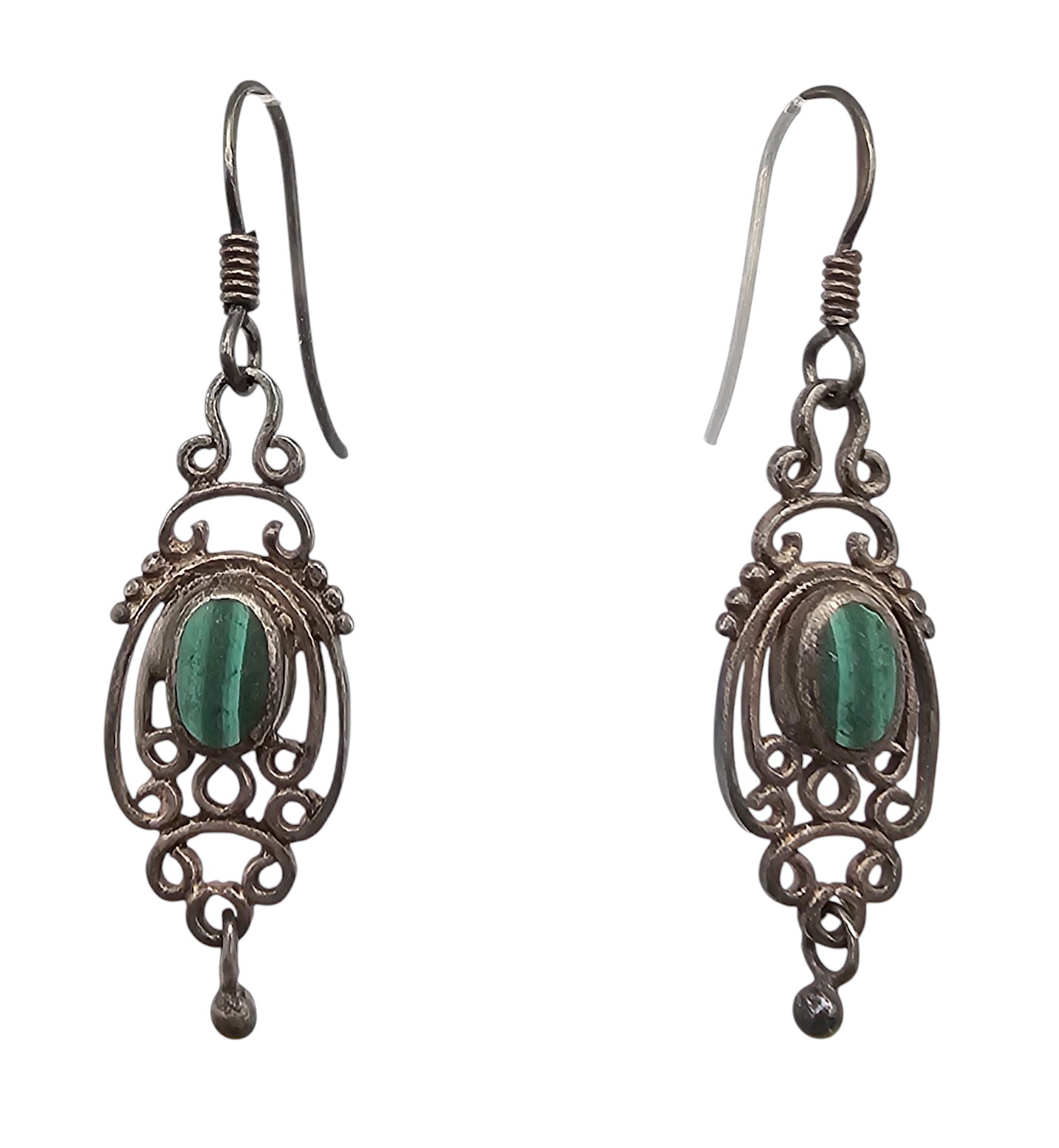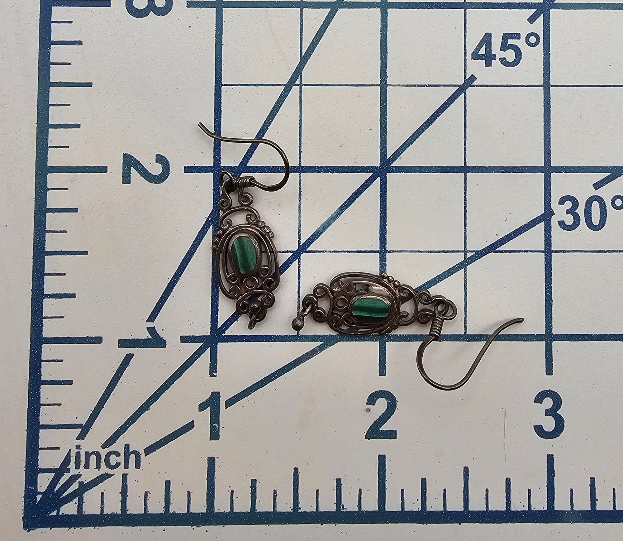 Malachite Sterling Silver Drop Dangle Earrings 2.9 G