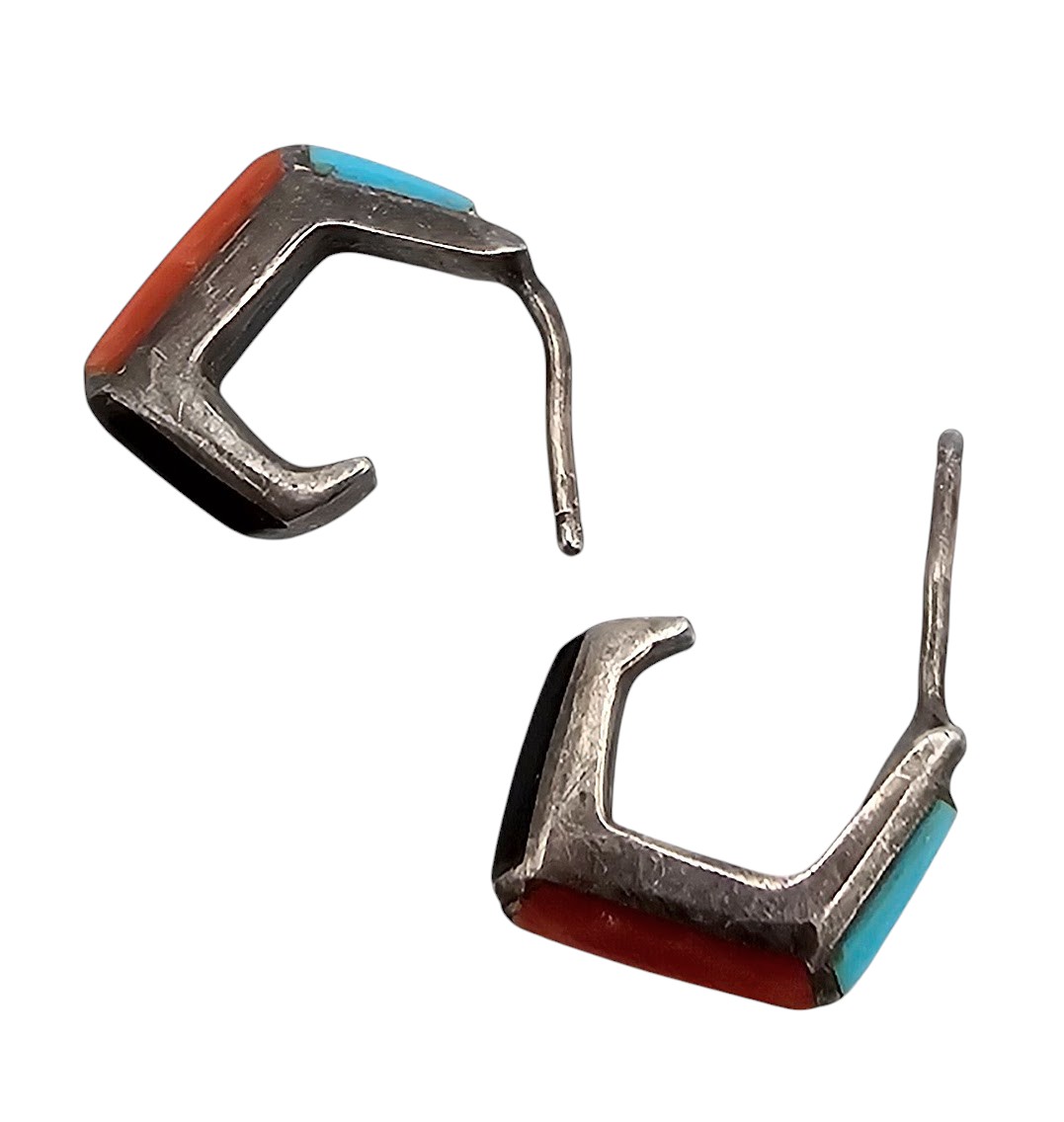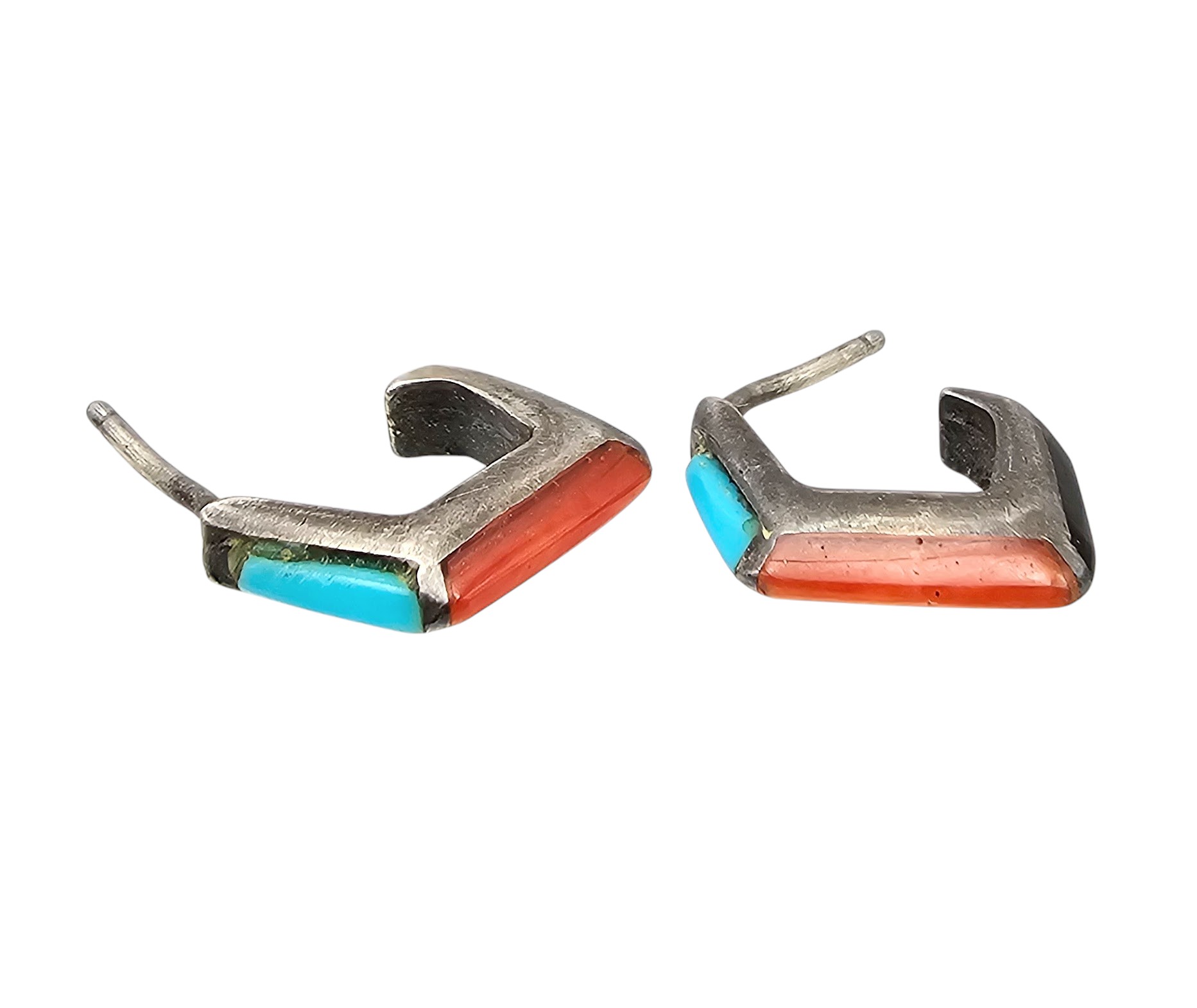 Southwestern Turquoise Coral Onyx Sterling Silver Hoop Earrings 1.9 G