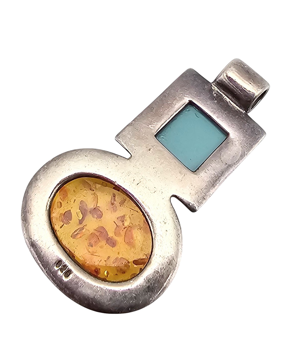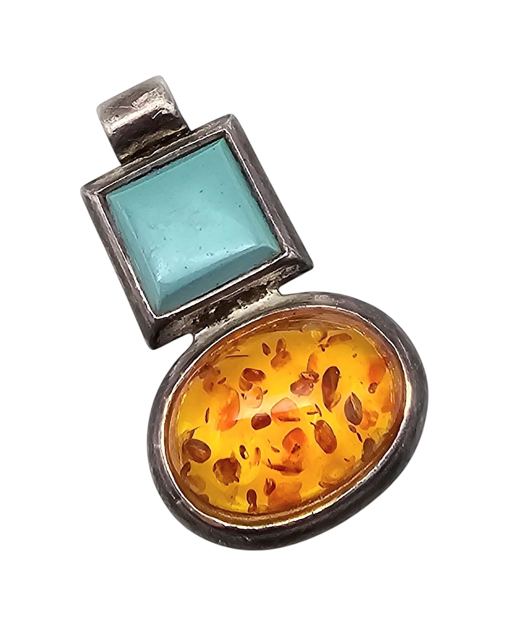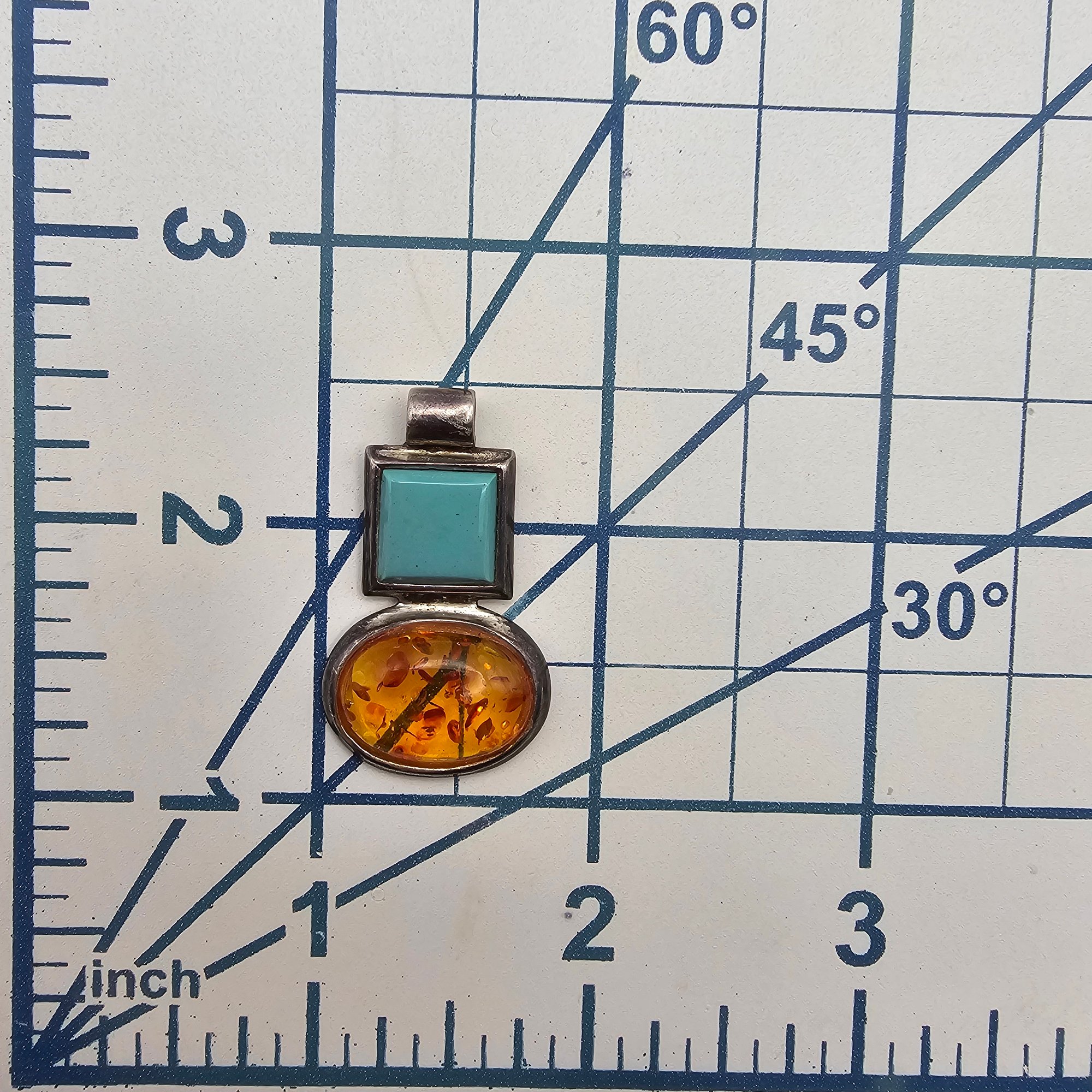 Southwestern Turquoise Amber Sterling Silver Pendant 6.1 G