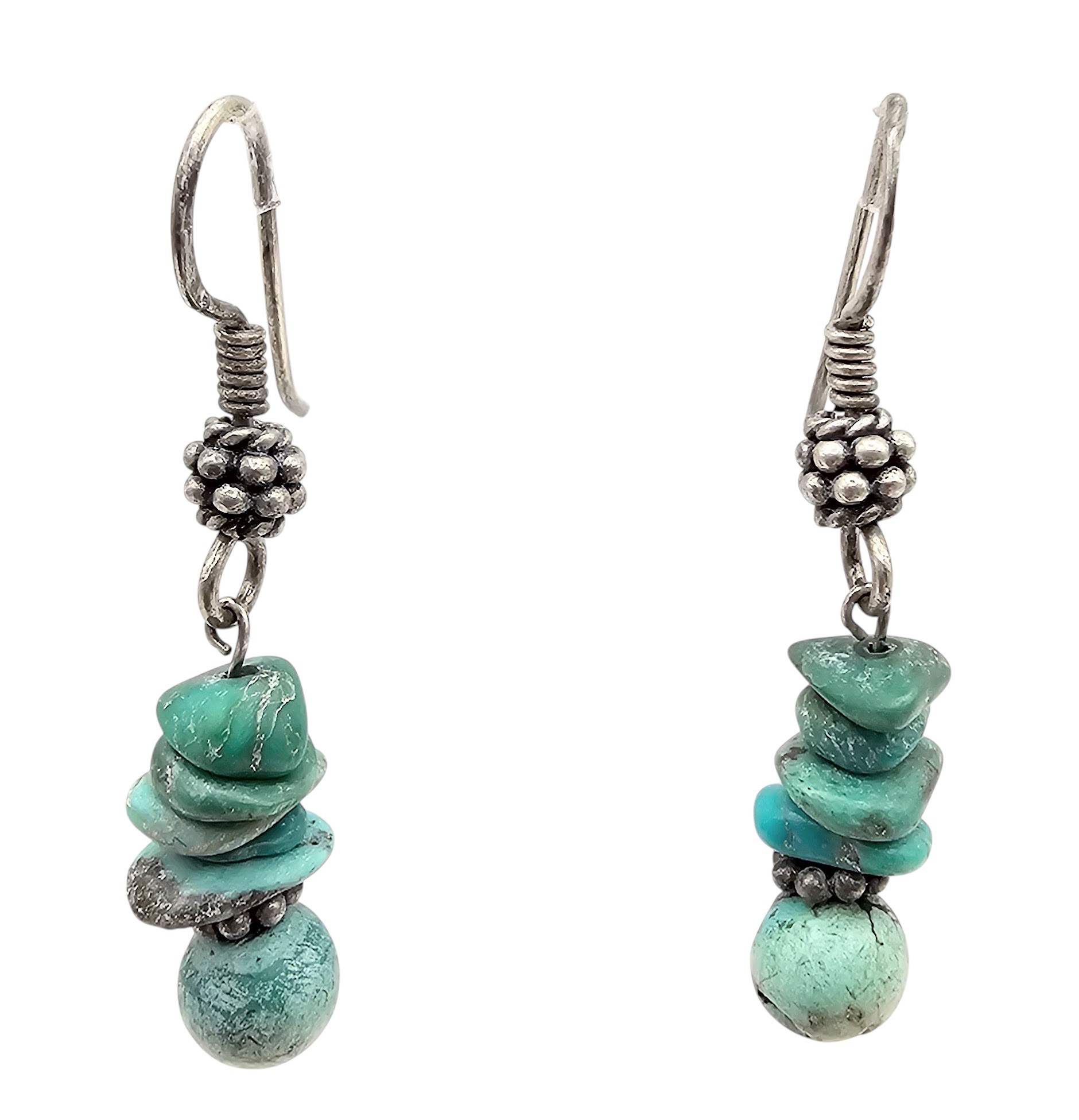 Southwestern Turquoise Sterling Silver Drop Dangle Earrings 4.7 G