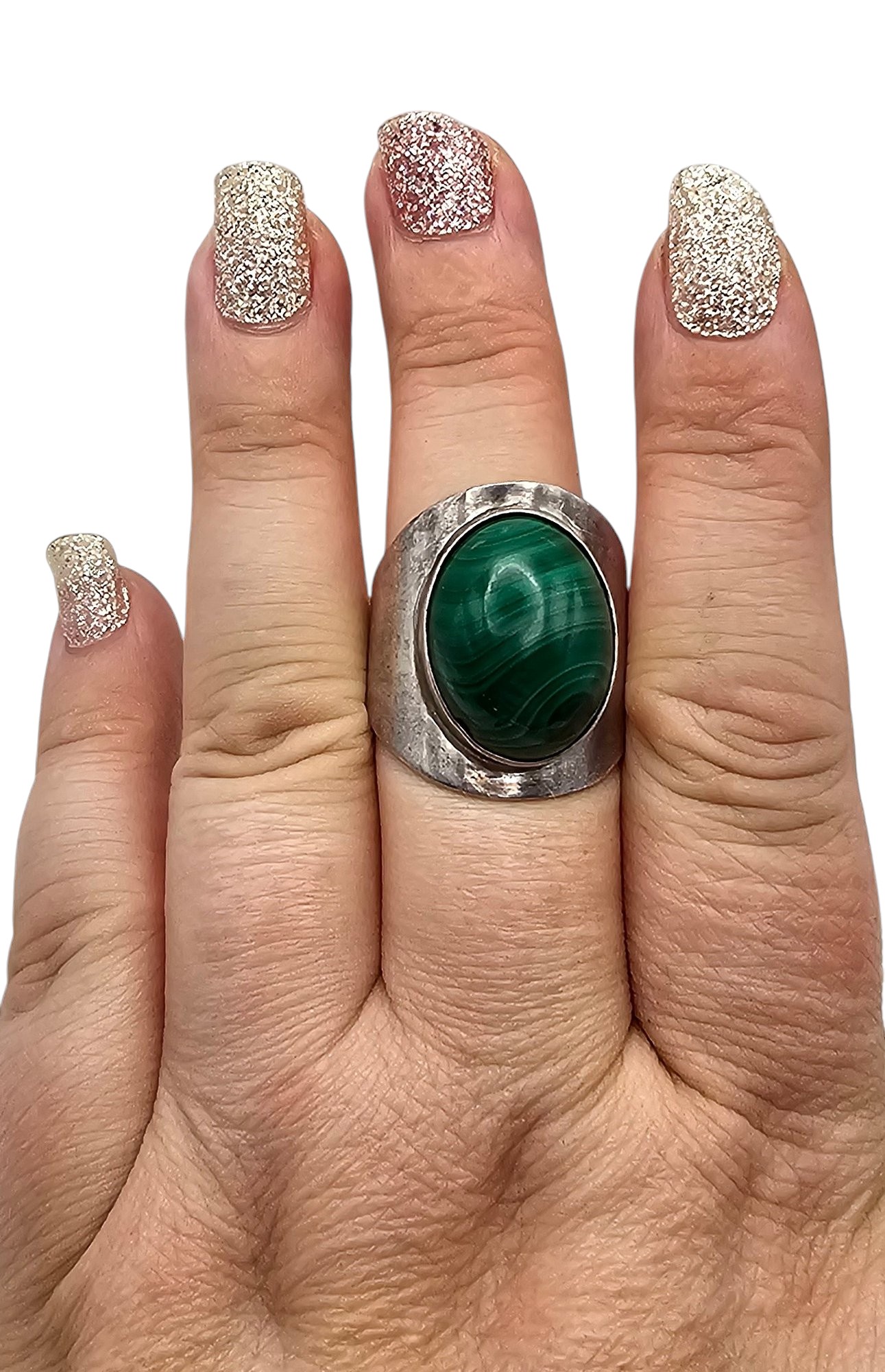 Southwestern Malachite Sterling Silver Ring Size 10.75 15.7 G