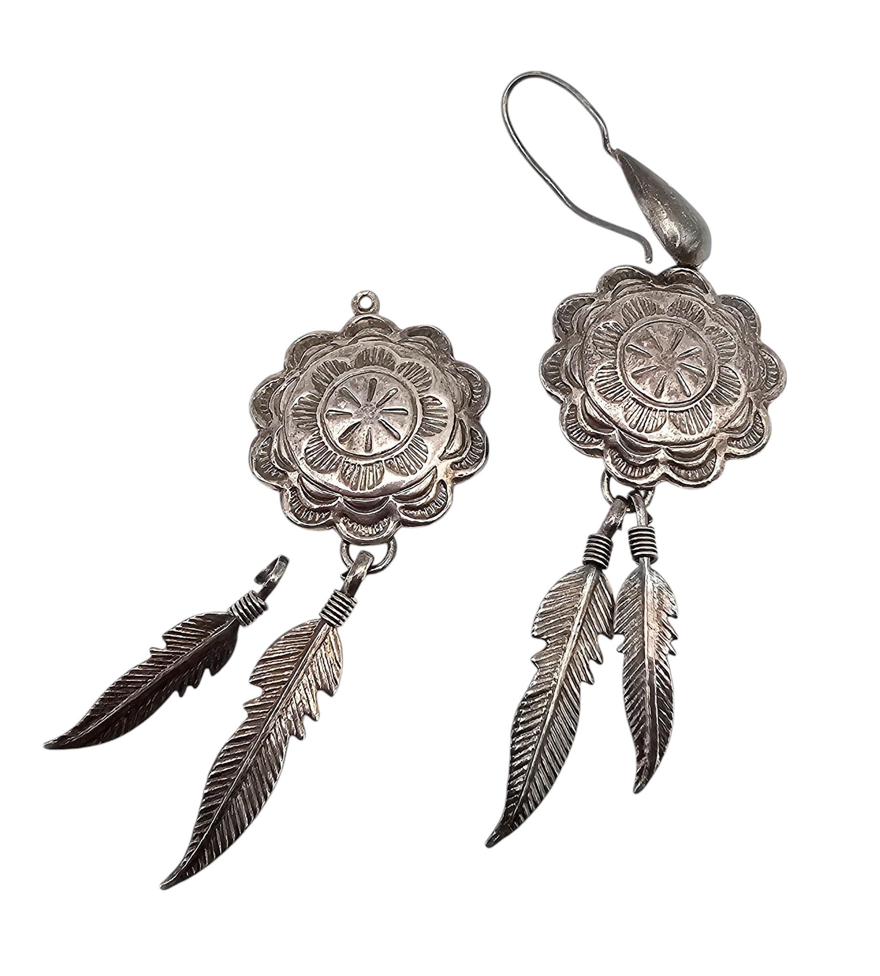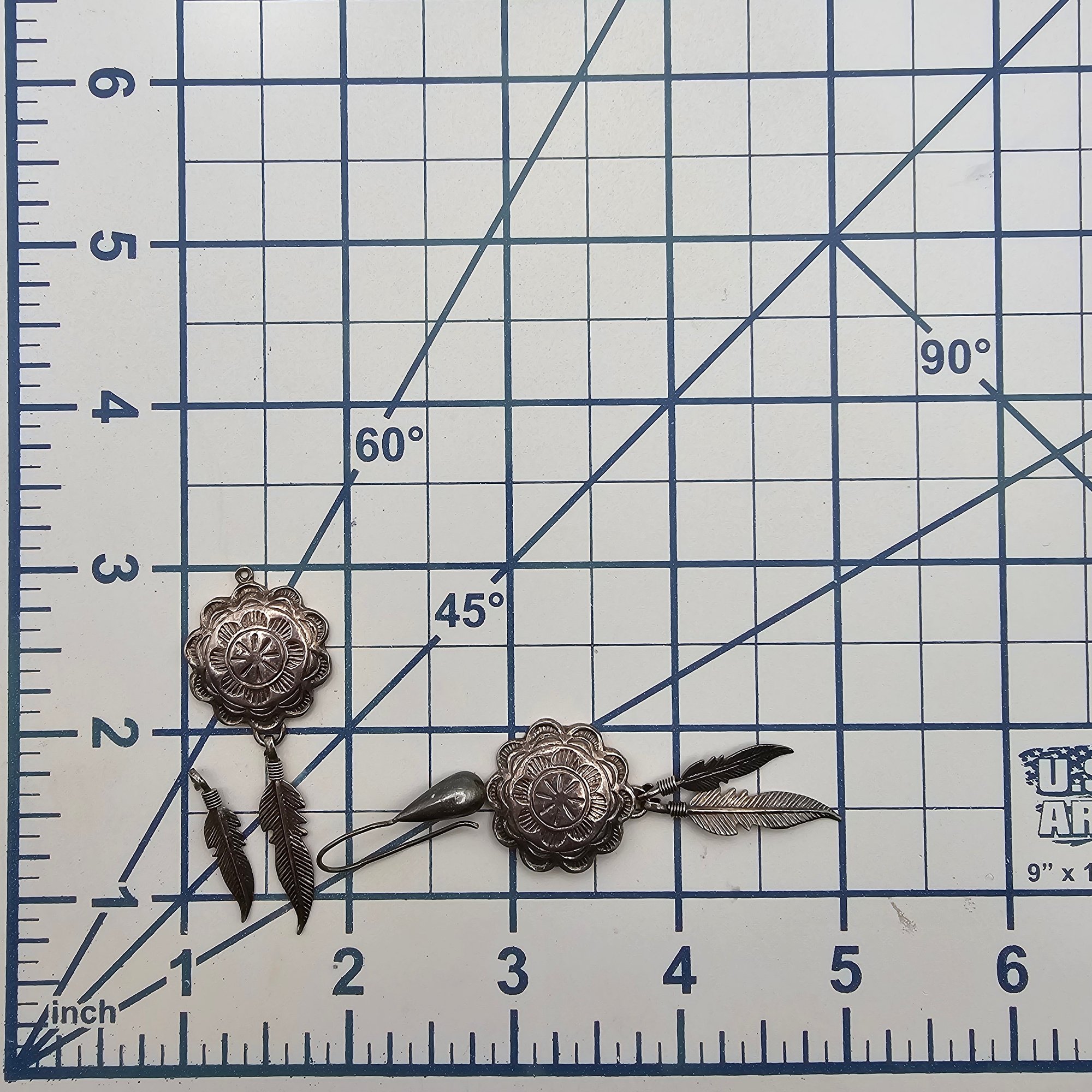 Southwestern Sterling Silver Concho Style Drop Dangle Earrings 9.3 G As Is