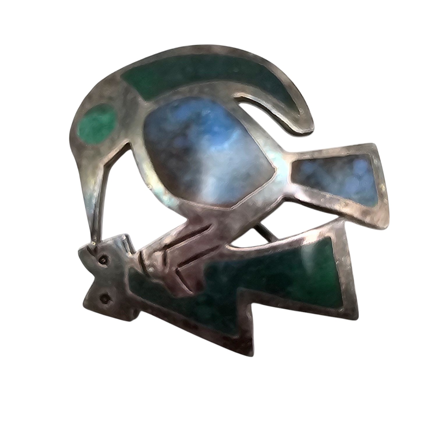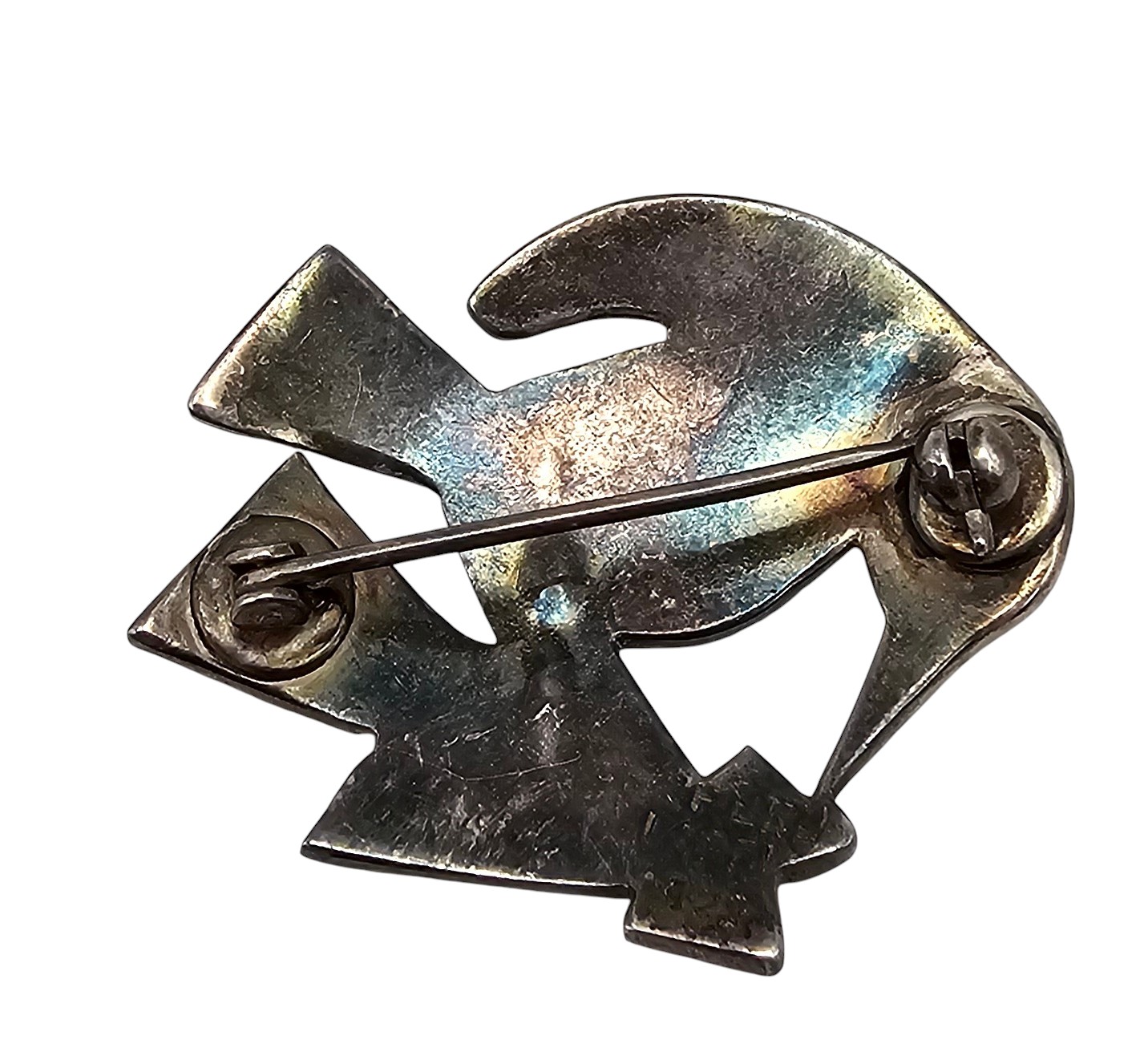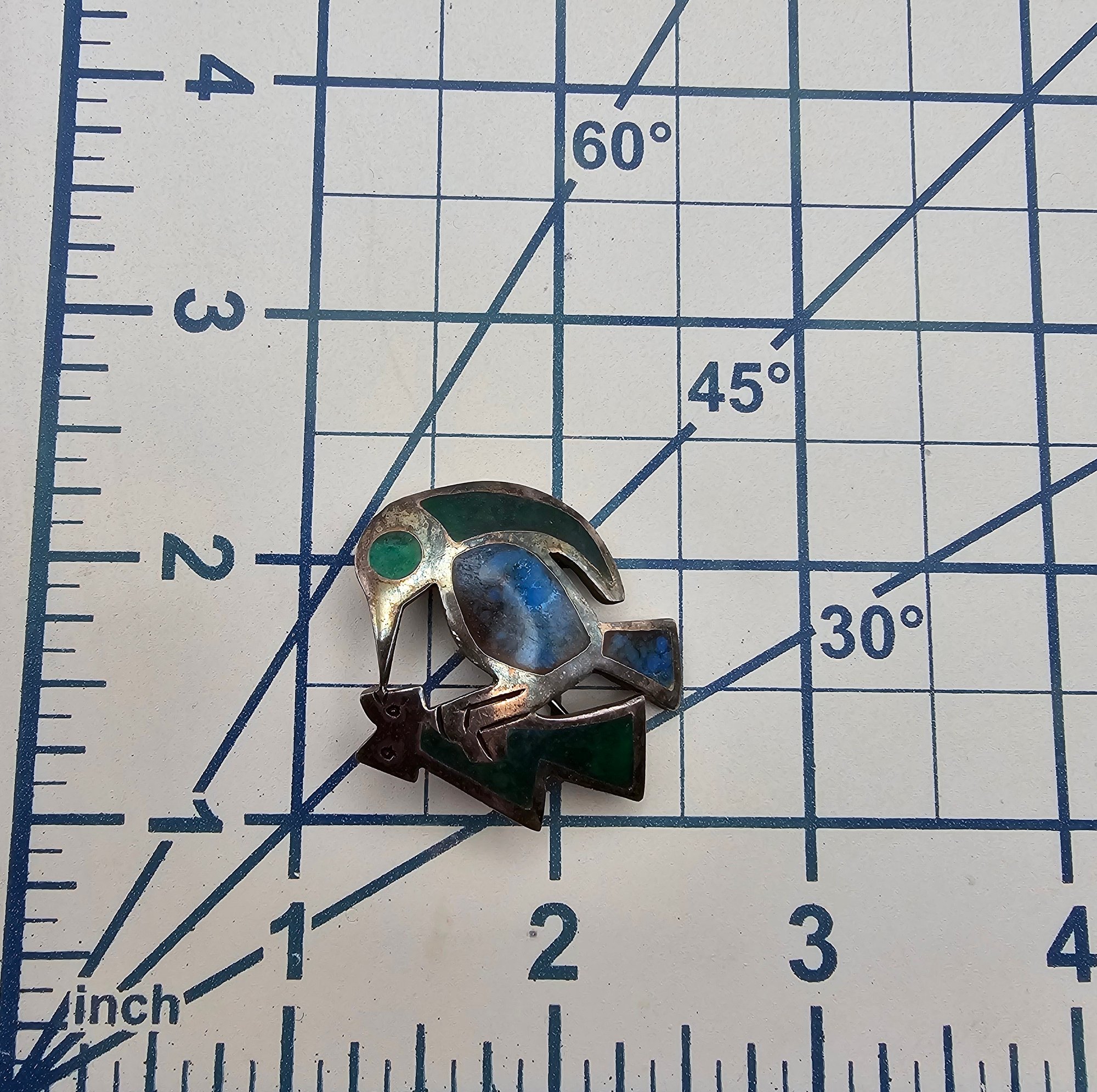 Southwestern Turquoise Sterling Silver Bird Brooch 10.6 G