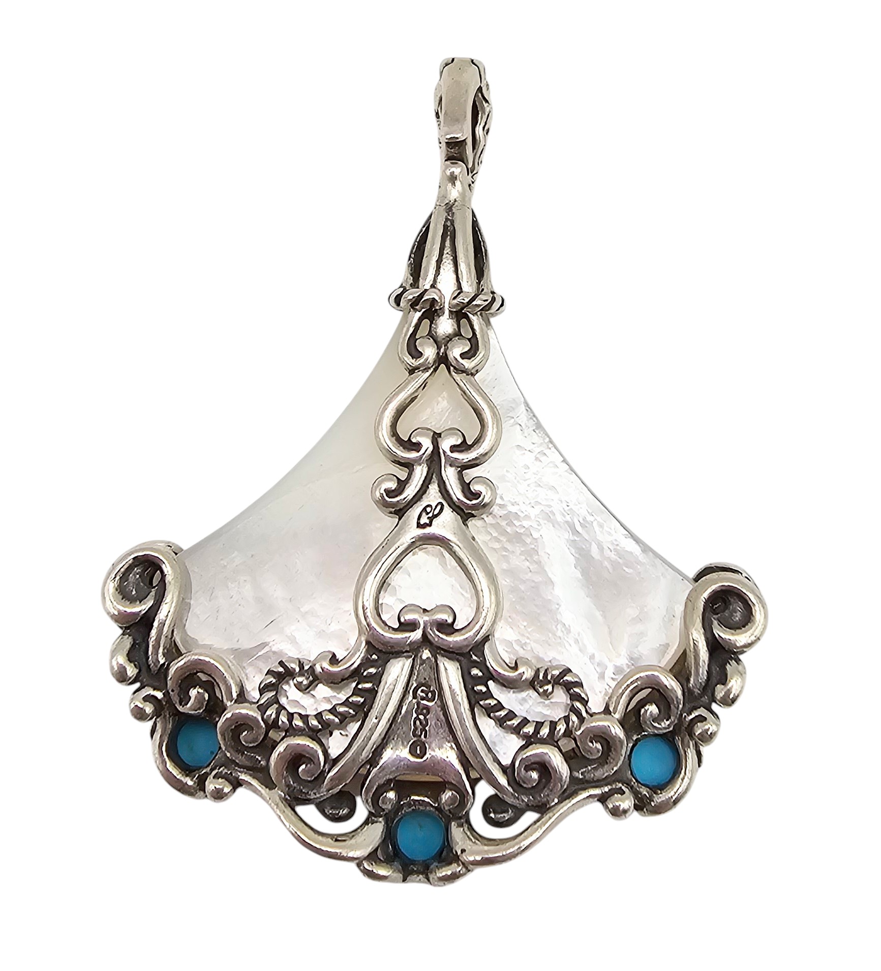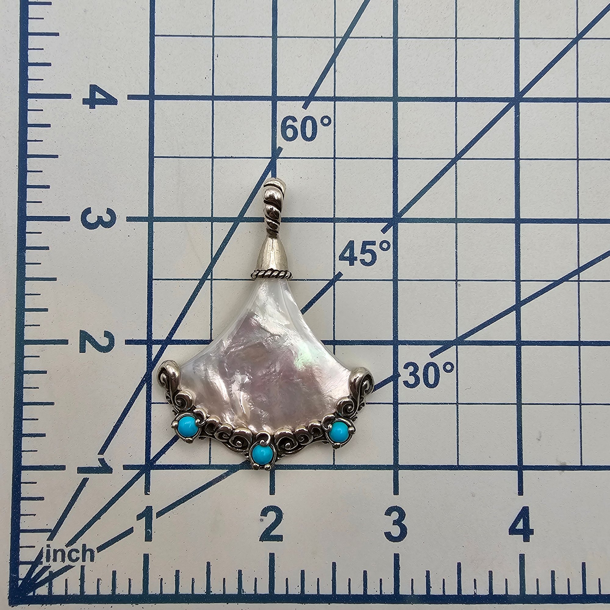 Carolyn Pollack Relios Mother Of Pearl Turquoise Sterling Silver Pendant 18.8 G
