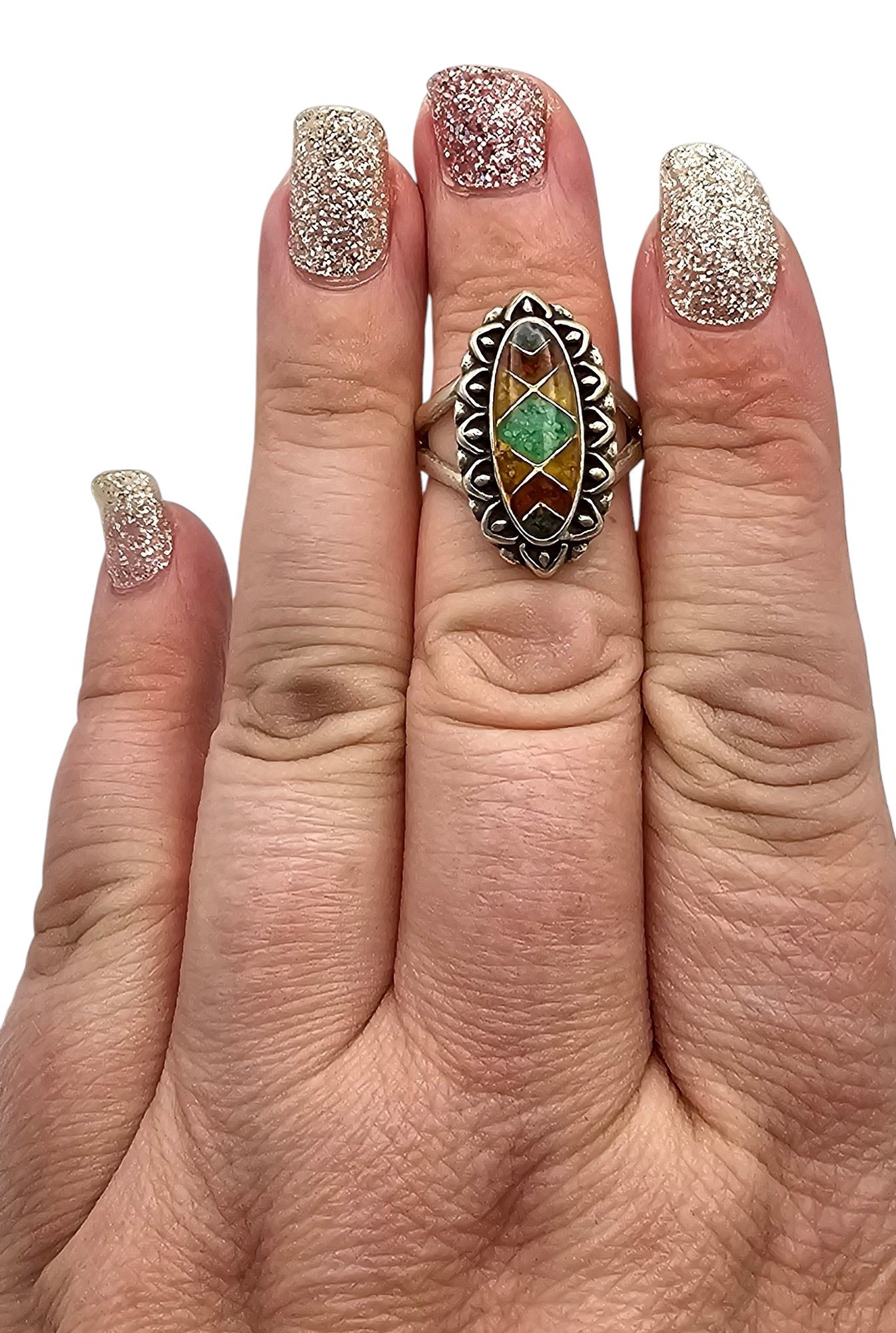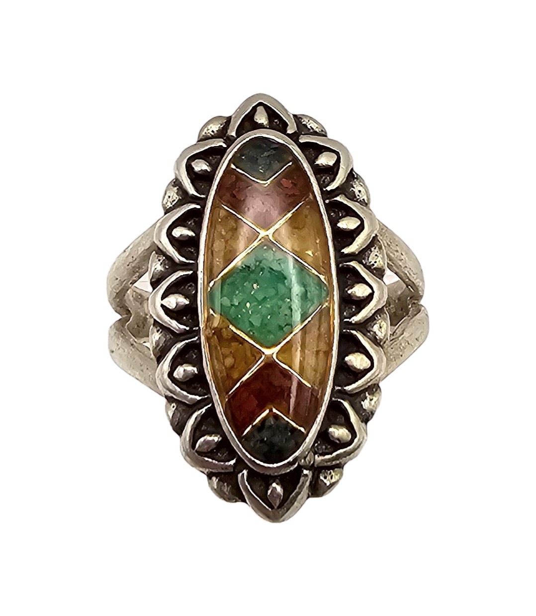 Carolyn Pollack Relios Crushed Coral Turquoise Sterling Silver Ring Size 6.5 6.8 G