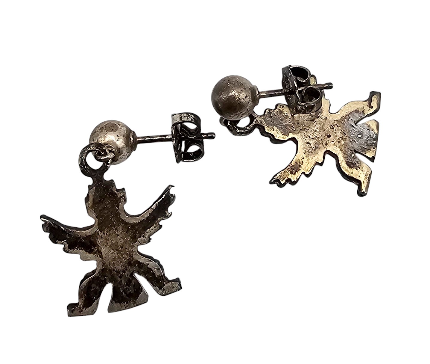 Native Crushed Turquoise Coral Sterling Silver Kachina Dancer Earrings 3.4 G