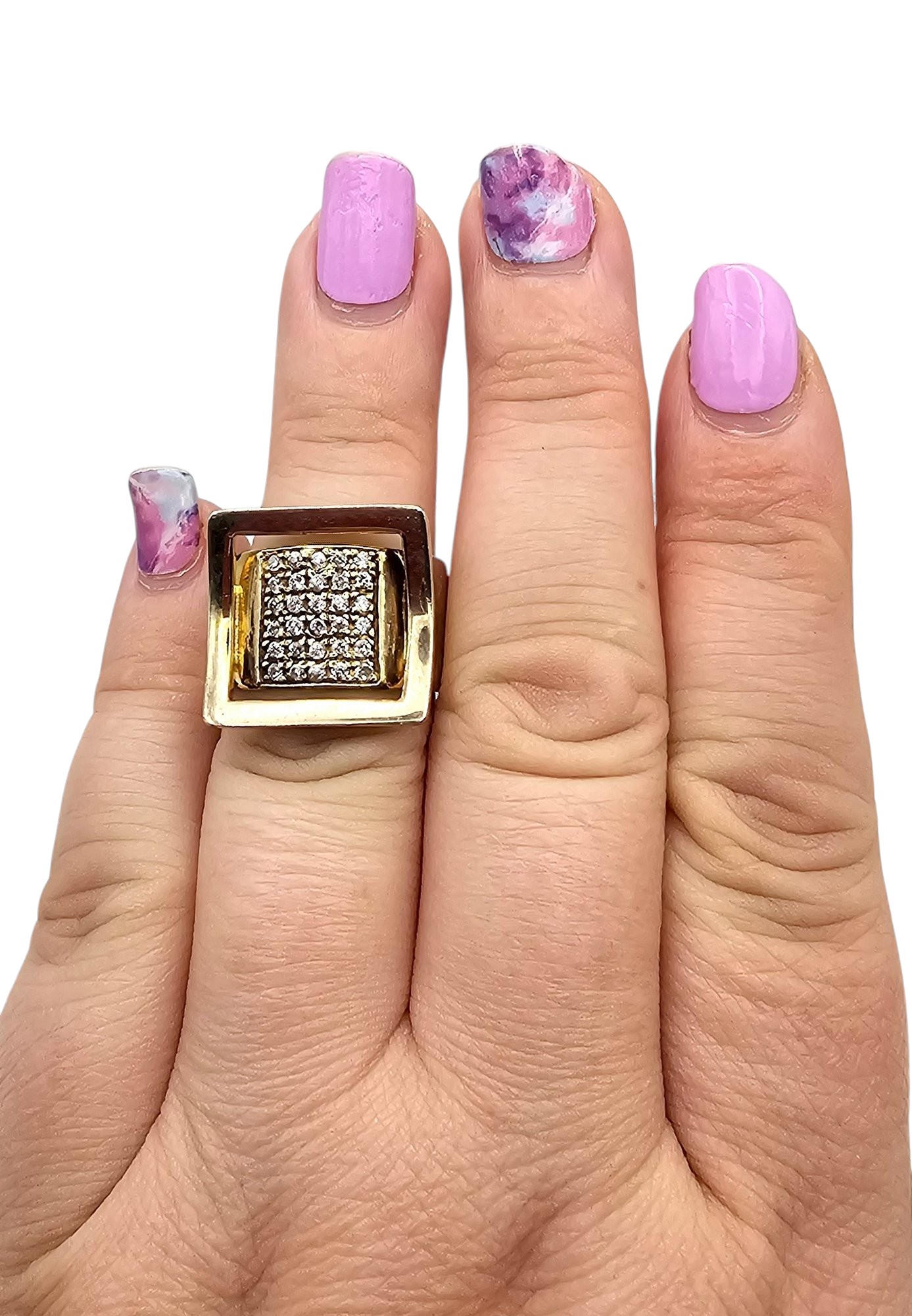 Rhinestone Gold Over Sterling Silver Ring Size 7 9.4 G